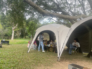 通风很好,可以容纳8个大人完全没问题 而且自带两扇门帘,有一定的隐私性 就是有点重,2-3人一起搭建会非常快,收比搭快,1分钟快速就收好了 双十一有活动价格很划算,首开成功