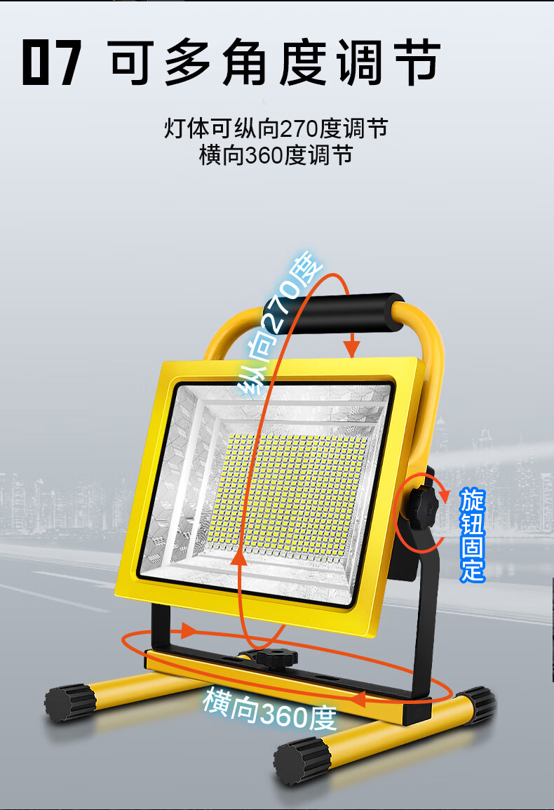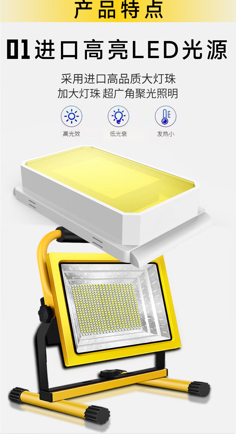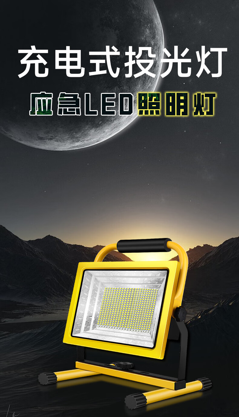 旋东亚明充电移动便捷投光灯户外防水工地停电照明露营摆地摊应急 ABS-充电应急投光灯300W长续航 标准