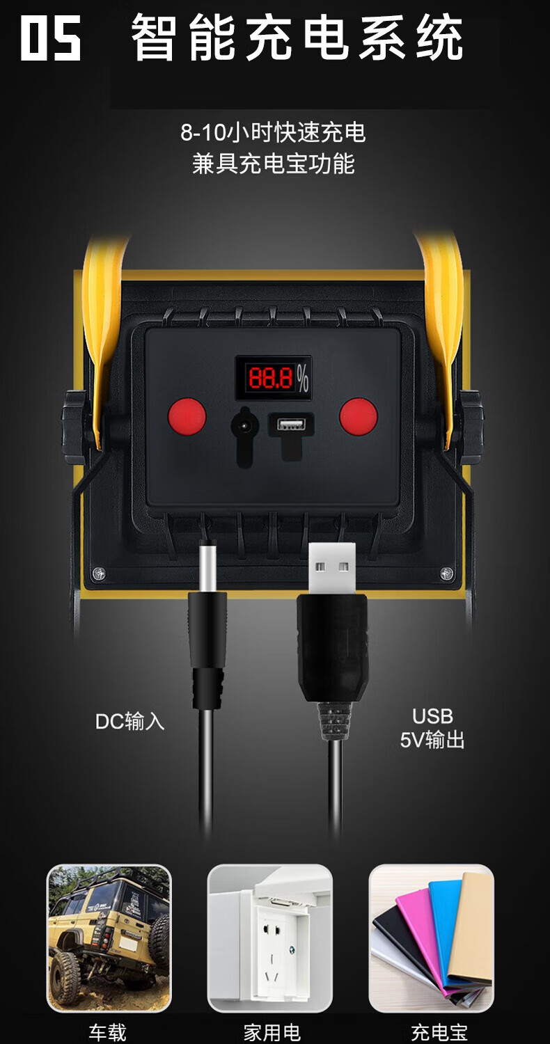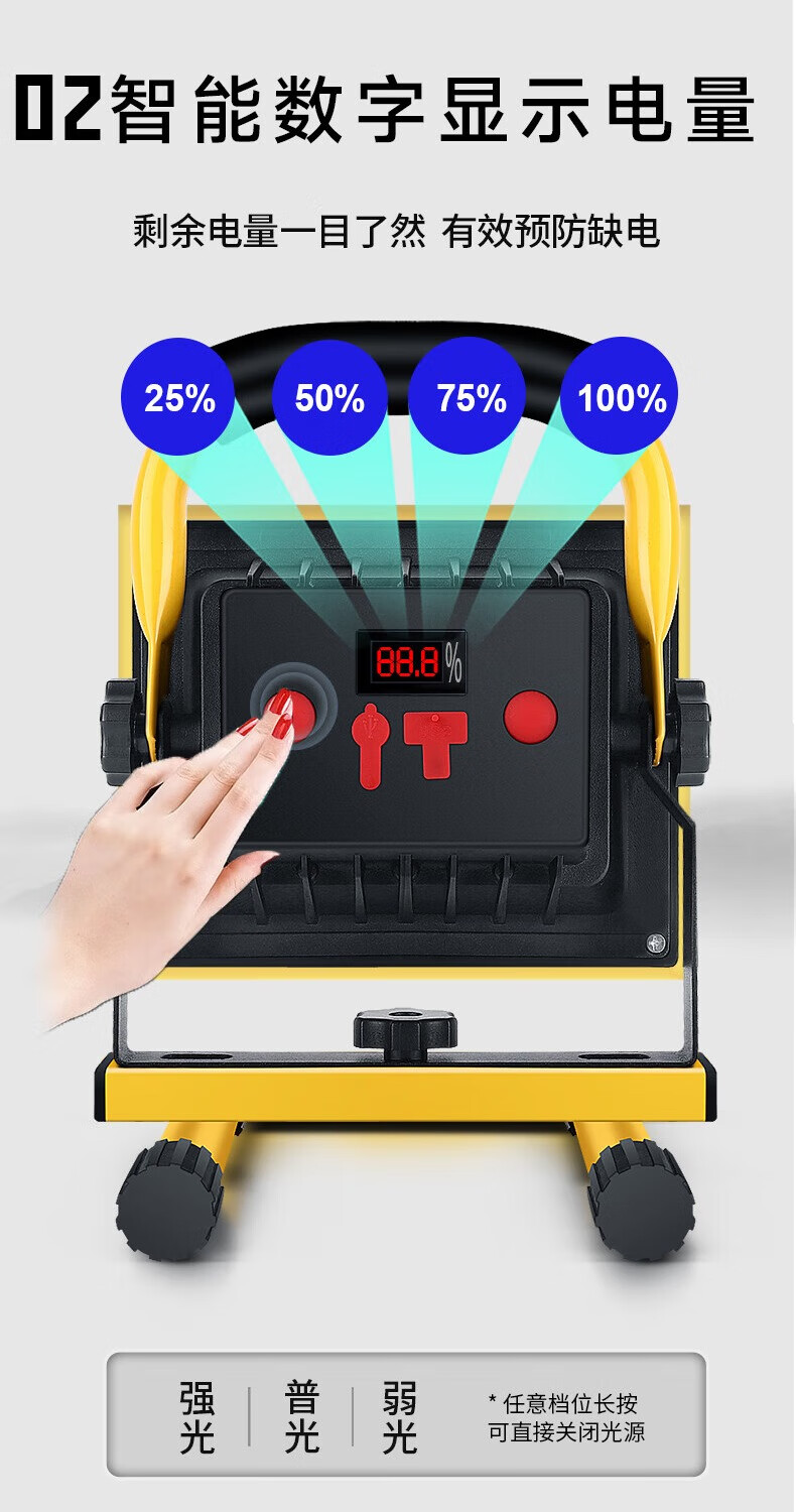 使用非常方便,在工地上搞装修这个亮度挺不错,充满了就直接使用,电量显示的非常准确,效果很好,照射的很宽,也非常耐用。投光灯质量不错,照程远,光也特别亮,一次充电能用好久呢!灯质量很好,亮度很强。照亮范围蛮大。物流快没有破损。满意的
