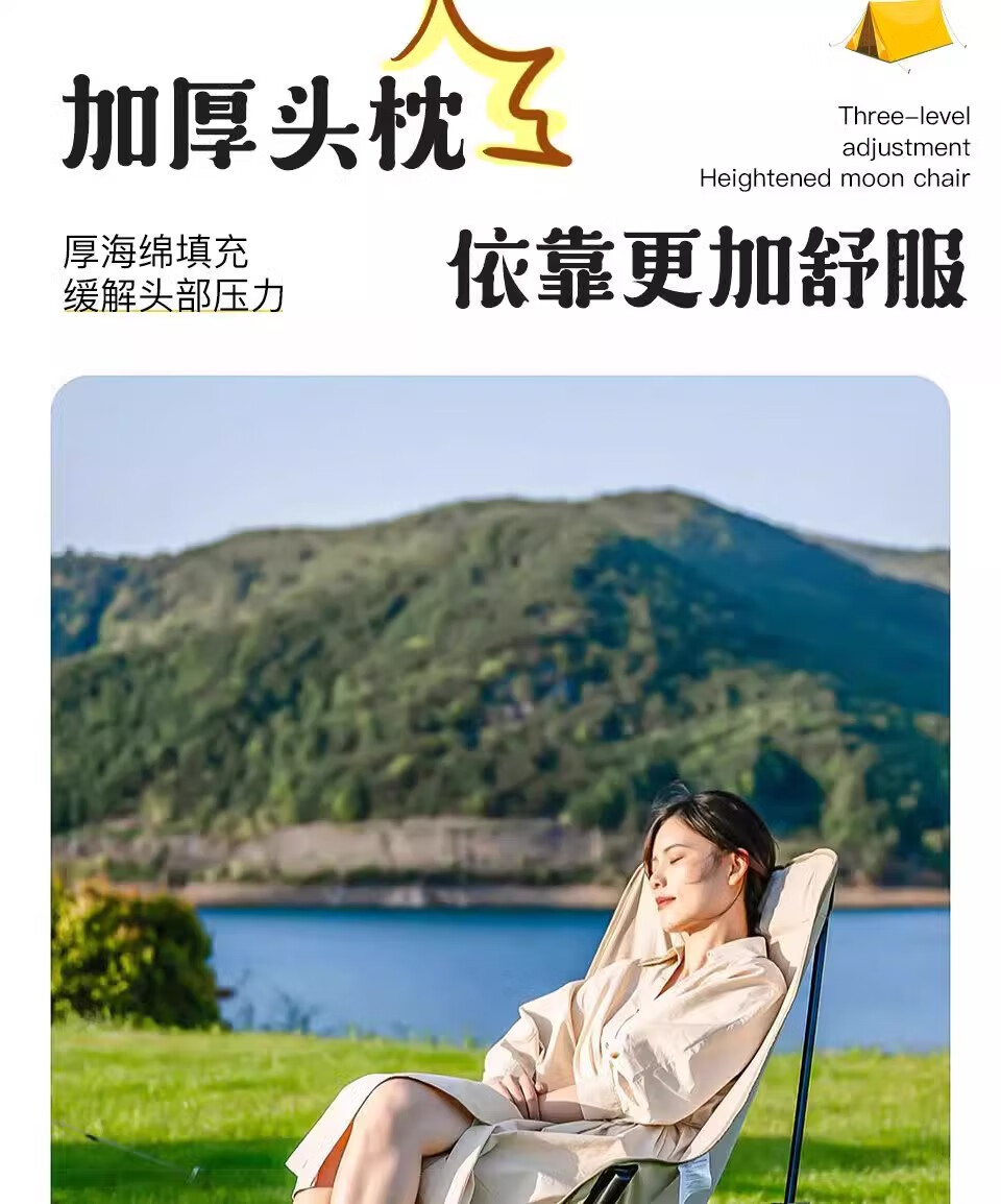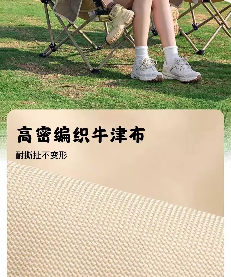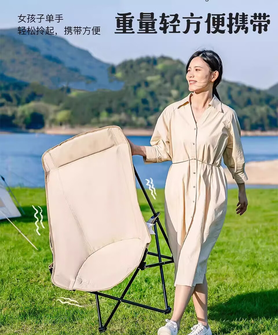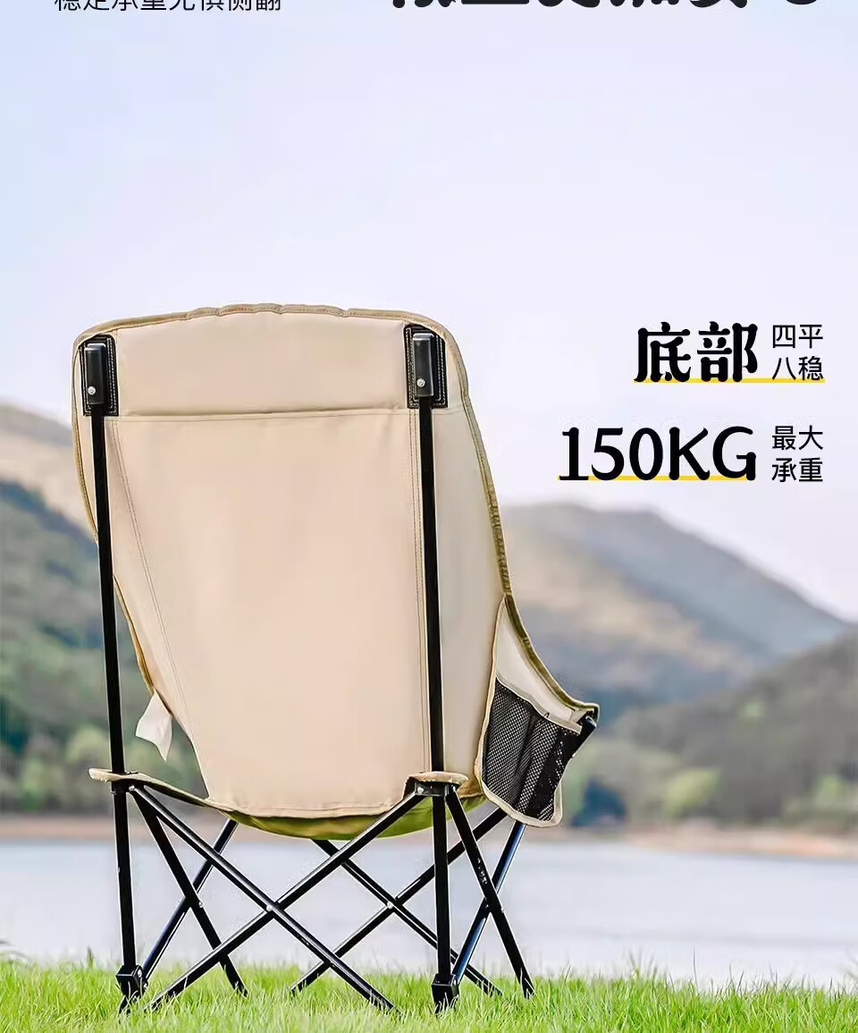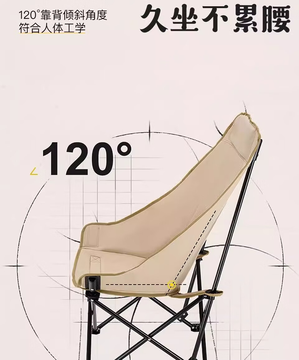 山头林村户外折叠椅高靠背月亮椅野餐桌椅露营家用商用便携沙滩躺椅钓鱼凳 高背月亮椅卡其色