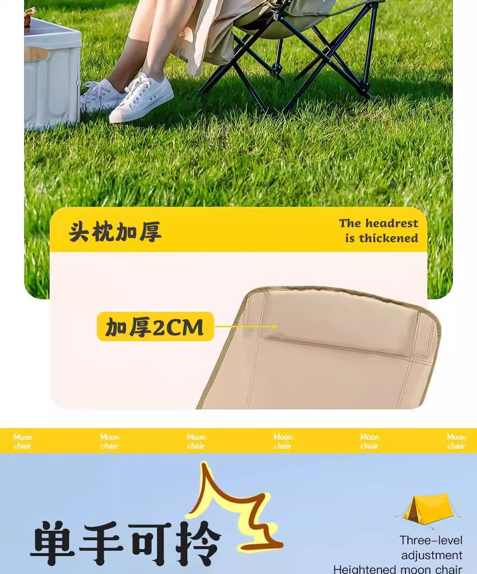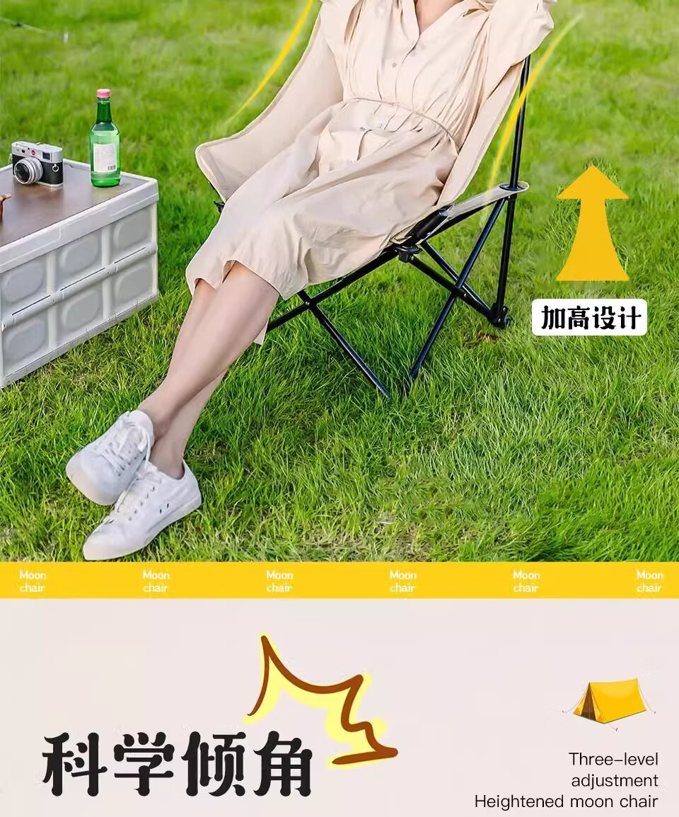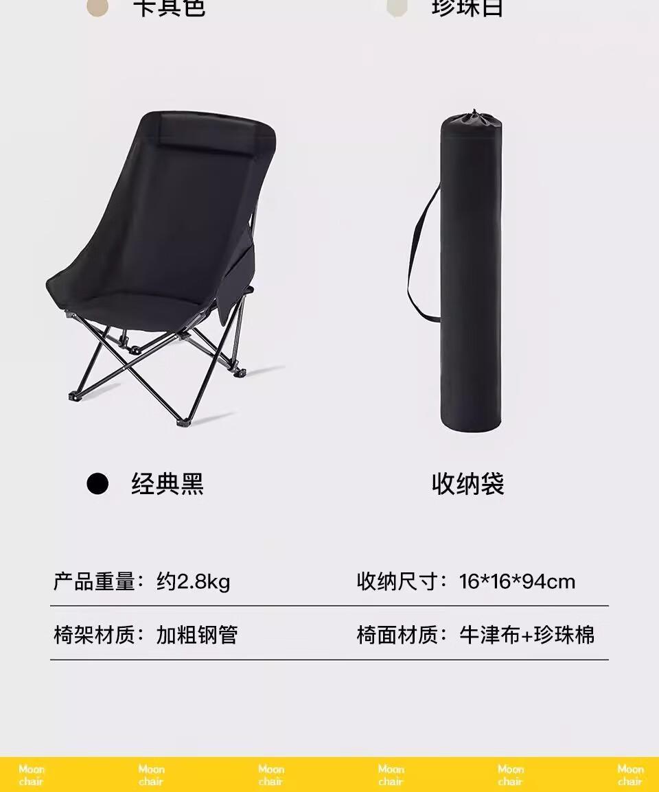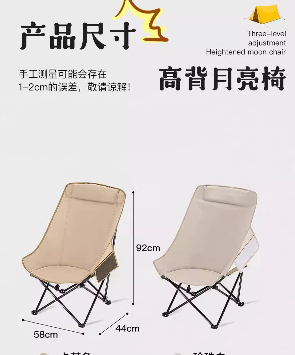 山头林村户外折叠椅高靠背月亮椅野餐桌椅露营家用商用便携沙滩躺椅钓鱼凳 高背月亮椅卡其色