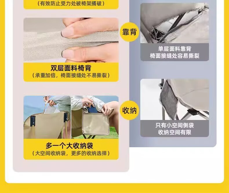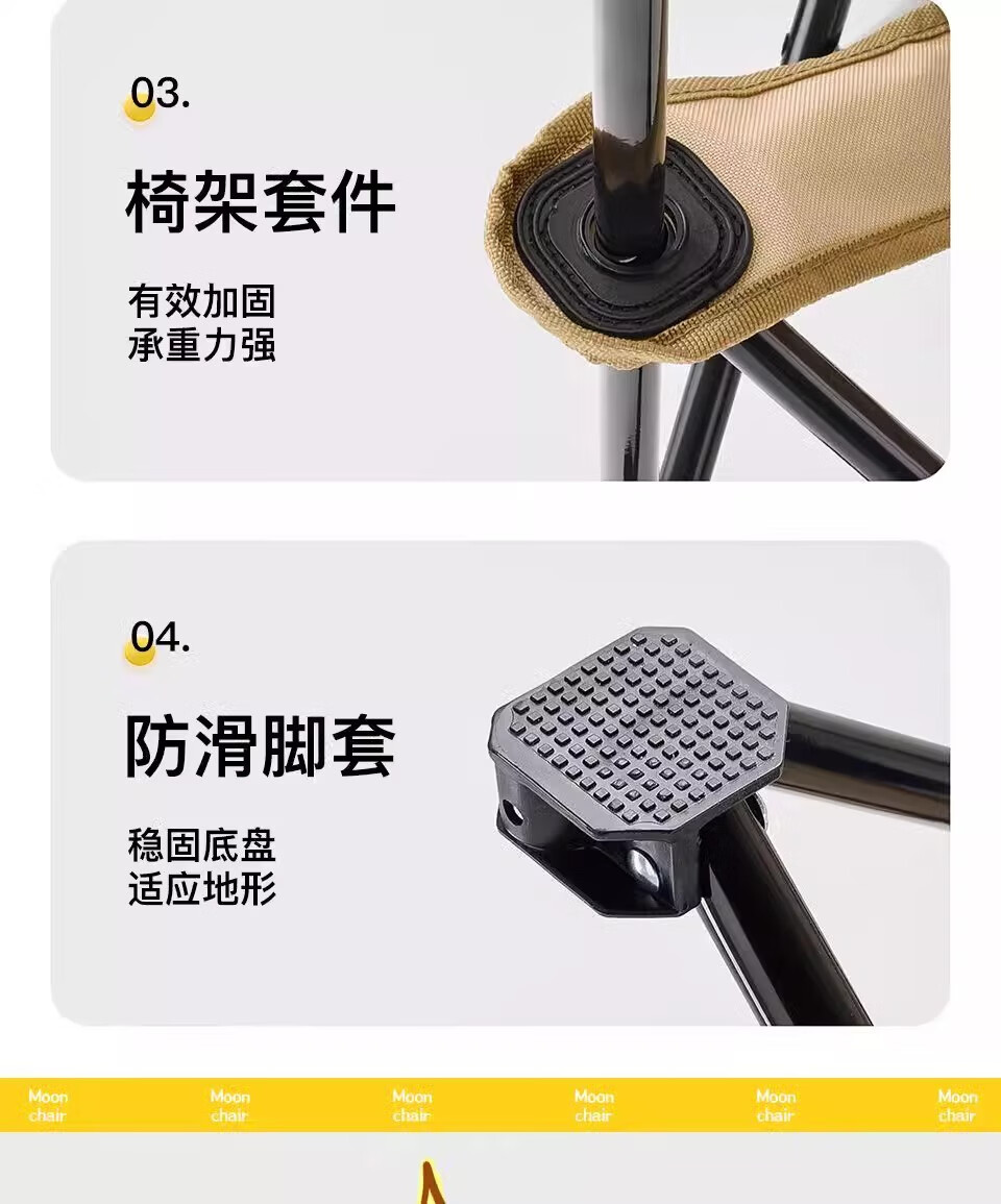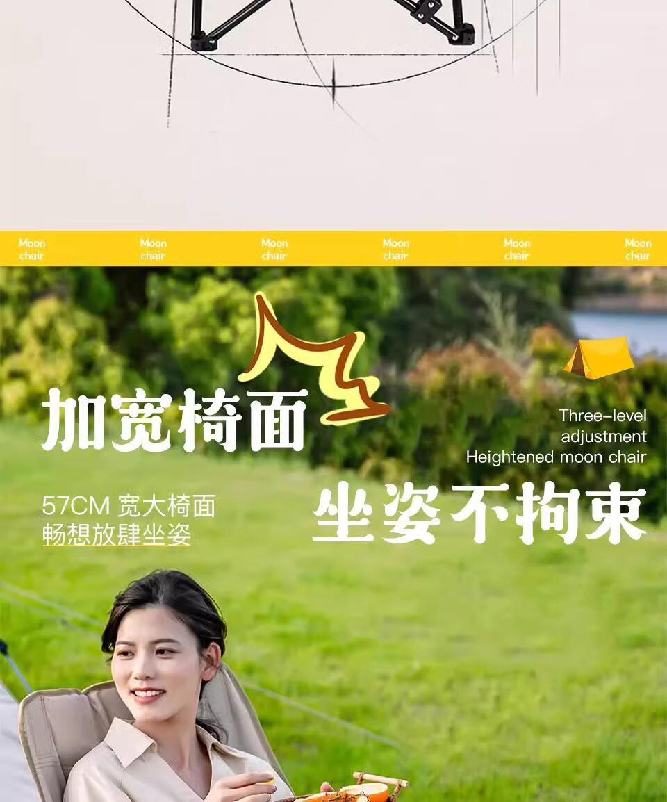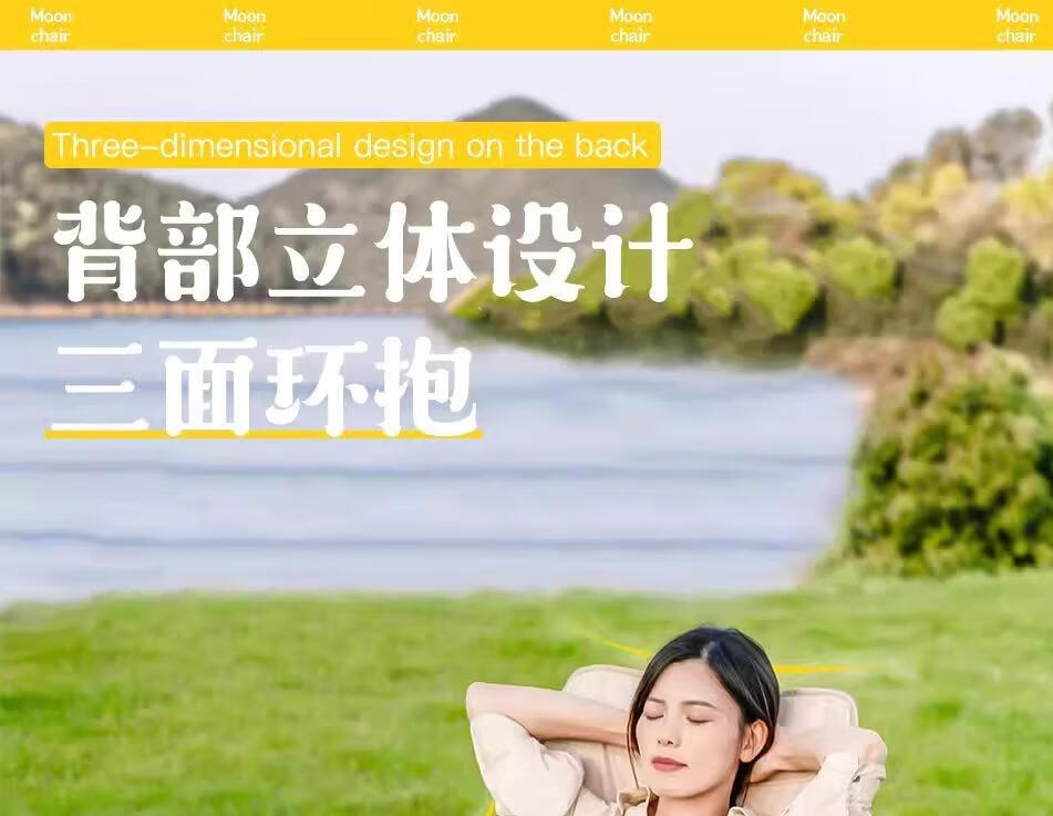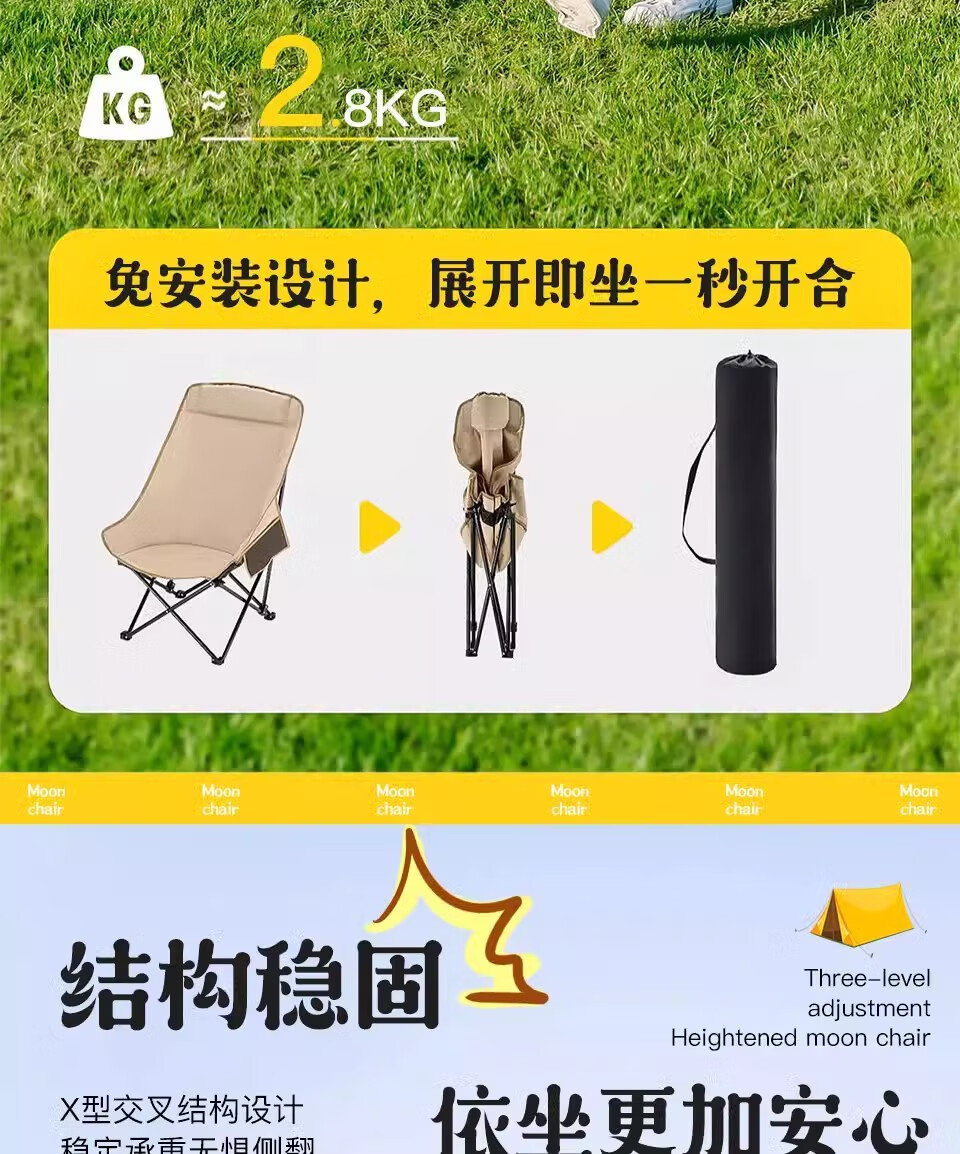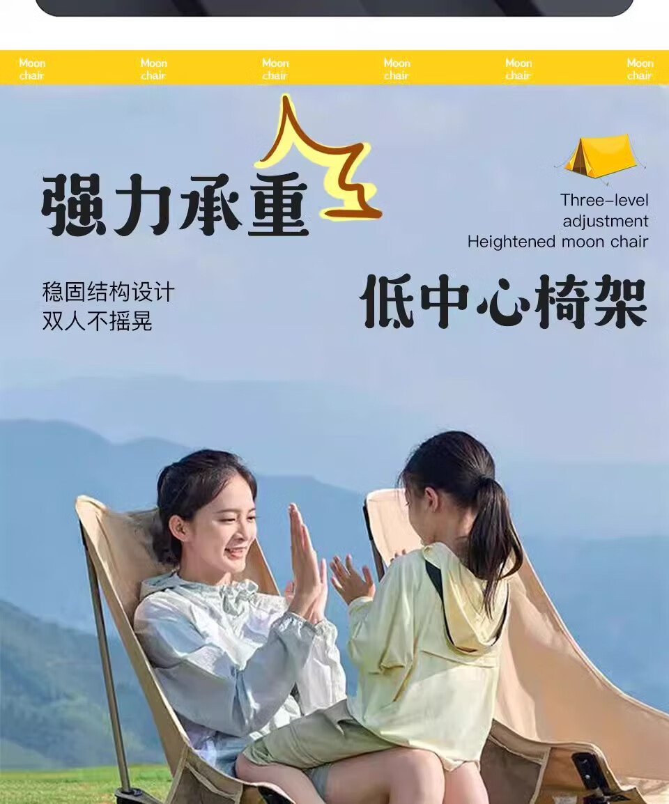 山头林村户外折叠椅高靠背月亮椅野餐桌椅露营家用商用便携沙滩躺椅钓鱼凳 高背月亮椅卡其色
