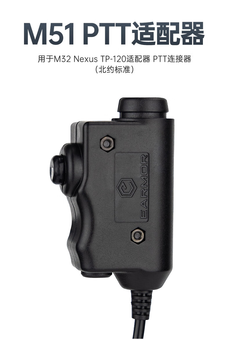 EARMOR耳魔M51/52对讲机PTT按键军事适配器U174军规电台转接战术耳机用 M52 3.5AUX【可连手机电脑)】