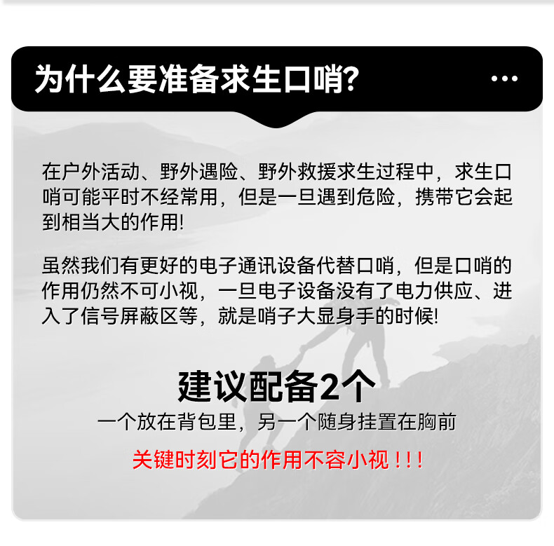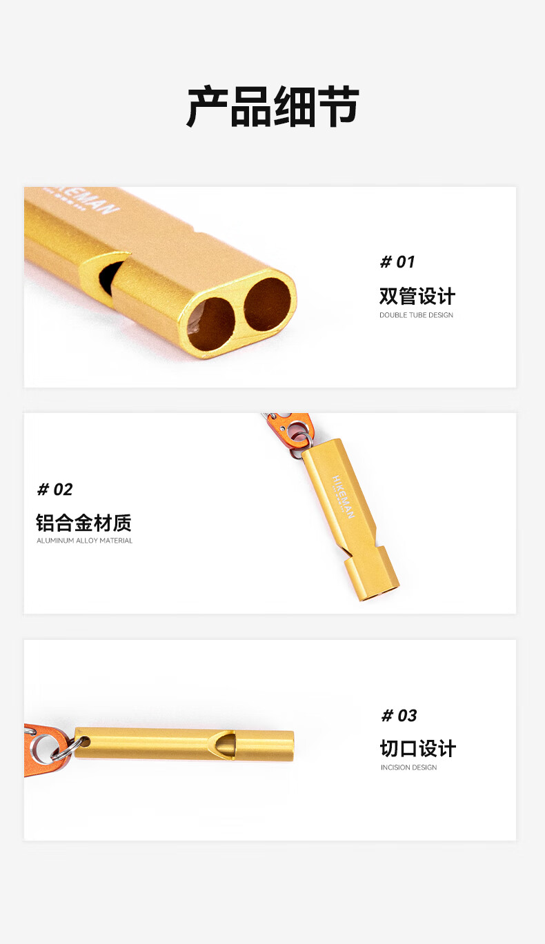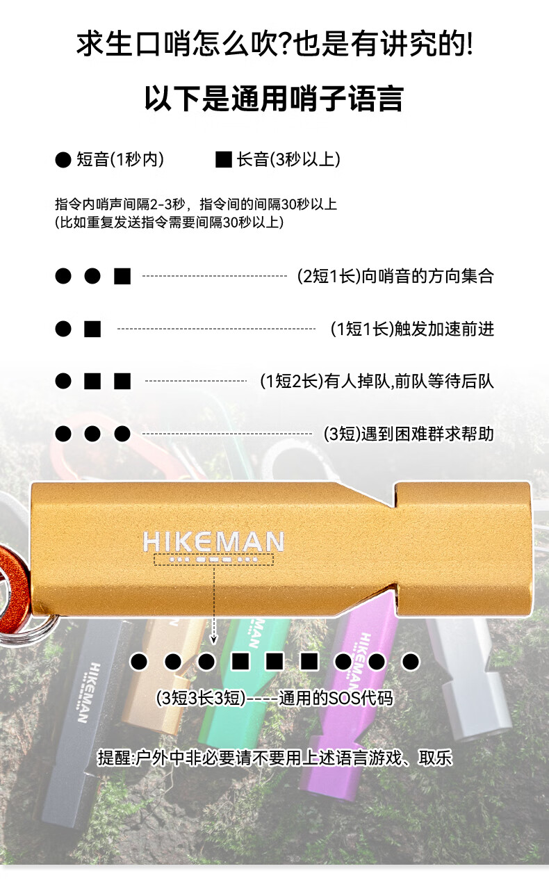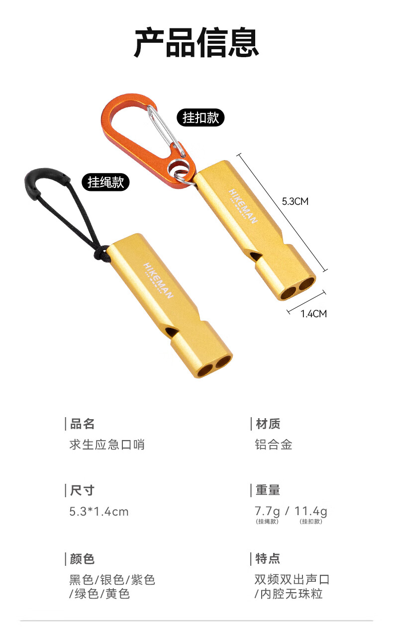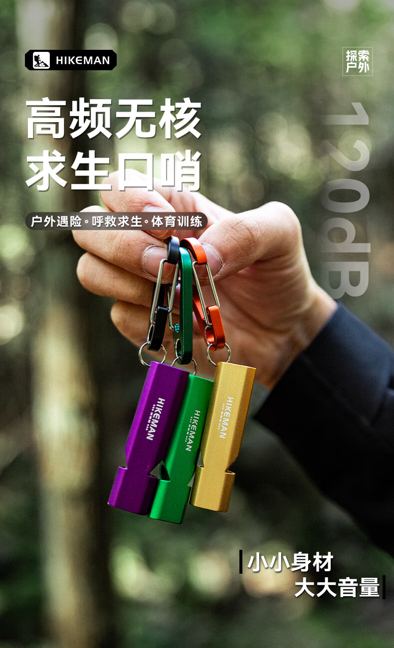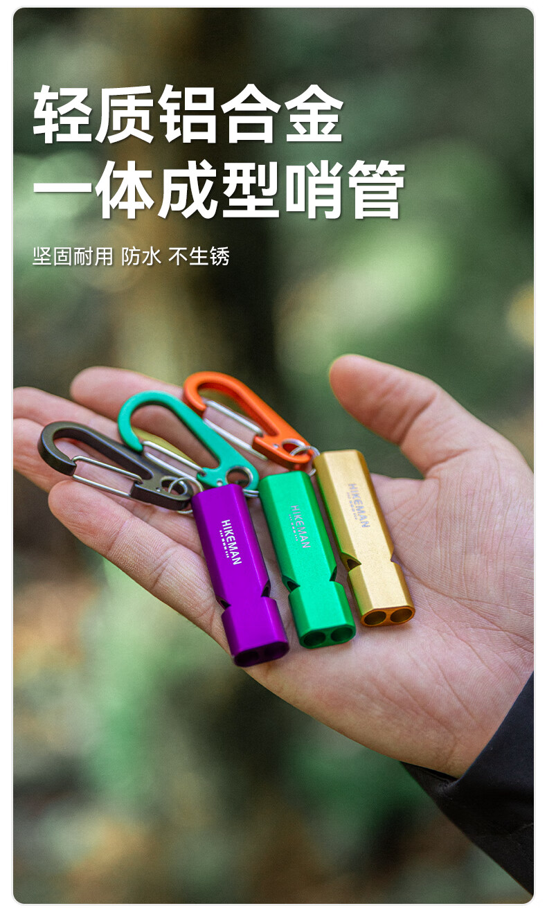 HIKEMAN憨客户外救生应急哨子超大声高频口哨高分贝爆音铝合金求生救援哨 5个装-颜色随机-【挂绳款】 可备注颜色