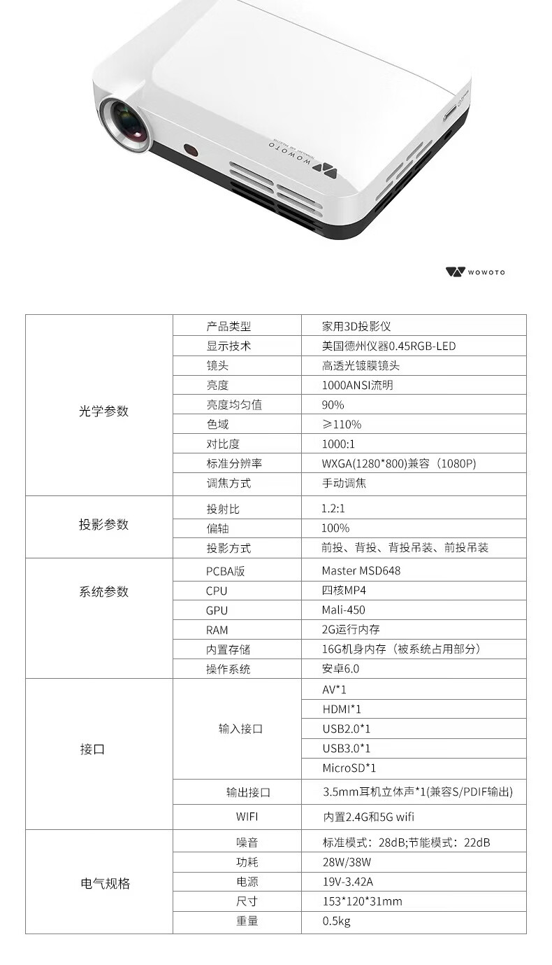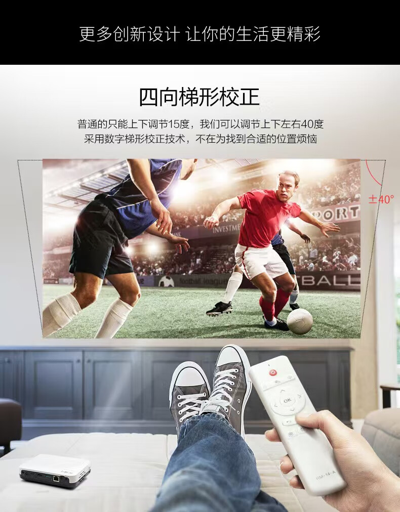 窝窝头便携高清投影仪迷你投影机5GWiFi联网播放u盘硬盘内存卡内置电池 白色投影机标配带试机U盘