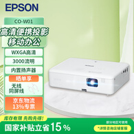 爱普生(EPSON)CO-W01 办公投影仪 家用商用办公会议 便携投影机(高流明 WXGA 两年质保)【标配+PC无线同屏线】