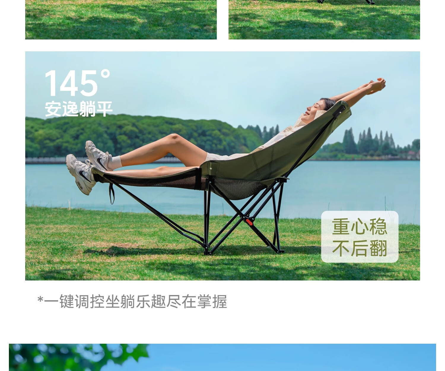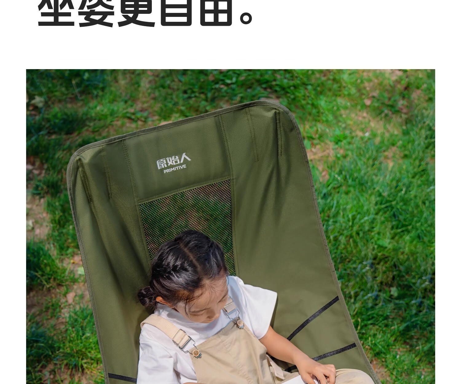 原始人(The Primitive)户外折叠椅躺椅露营椅子月亮椅便携办公室午休钓鱼沙滩休闲 脚托款网纱黑【三档可调】