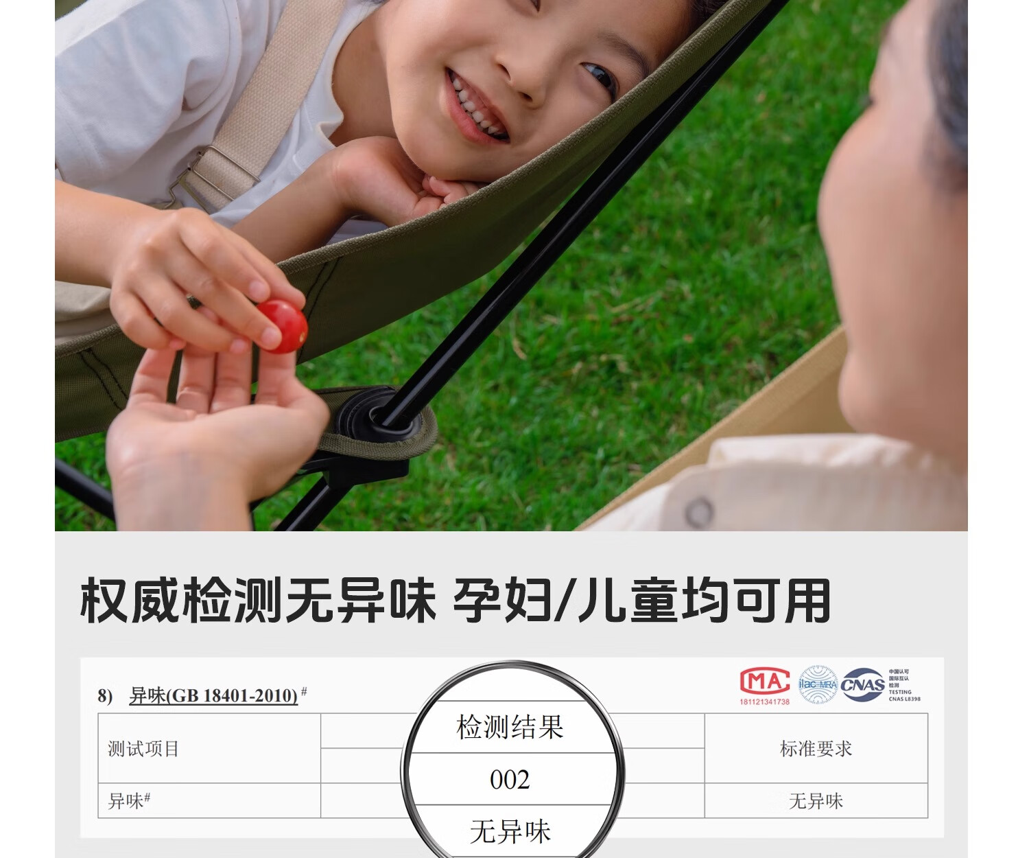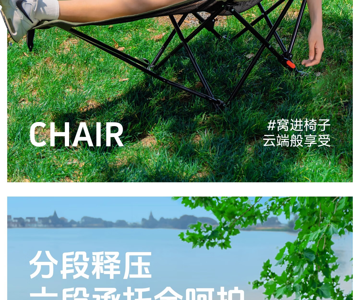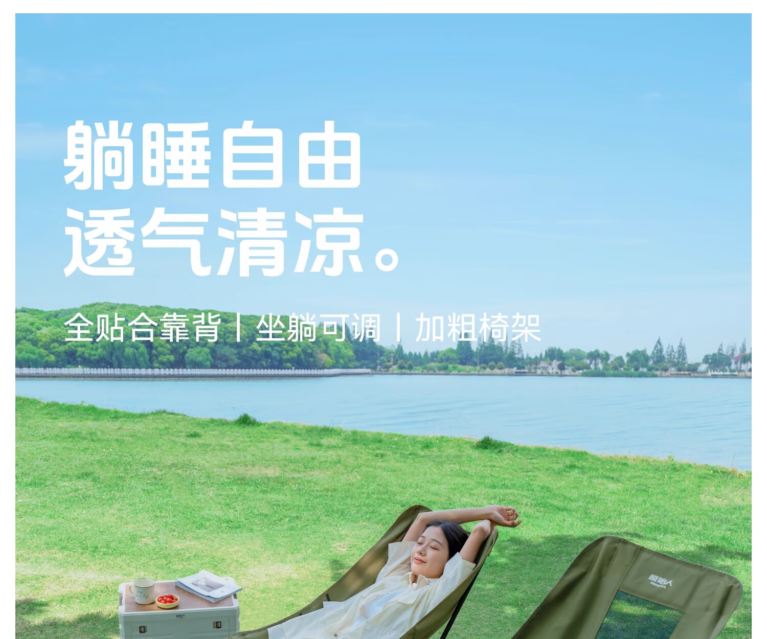 大牌驾到,收到货迫不及待体验了一把,档位收放自如,打开、收纳都很轻松,夏天躺着好透气关键很扎实,家里所有装备都是原始人,他家东西做的很精细,还等什么,你值得拥有!