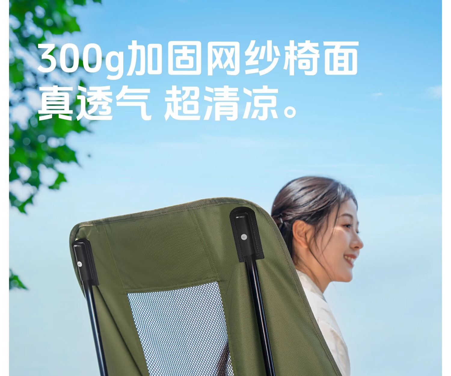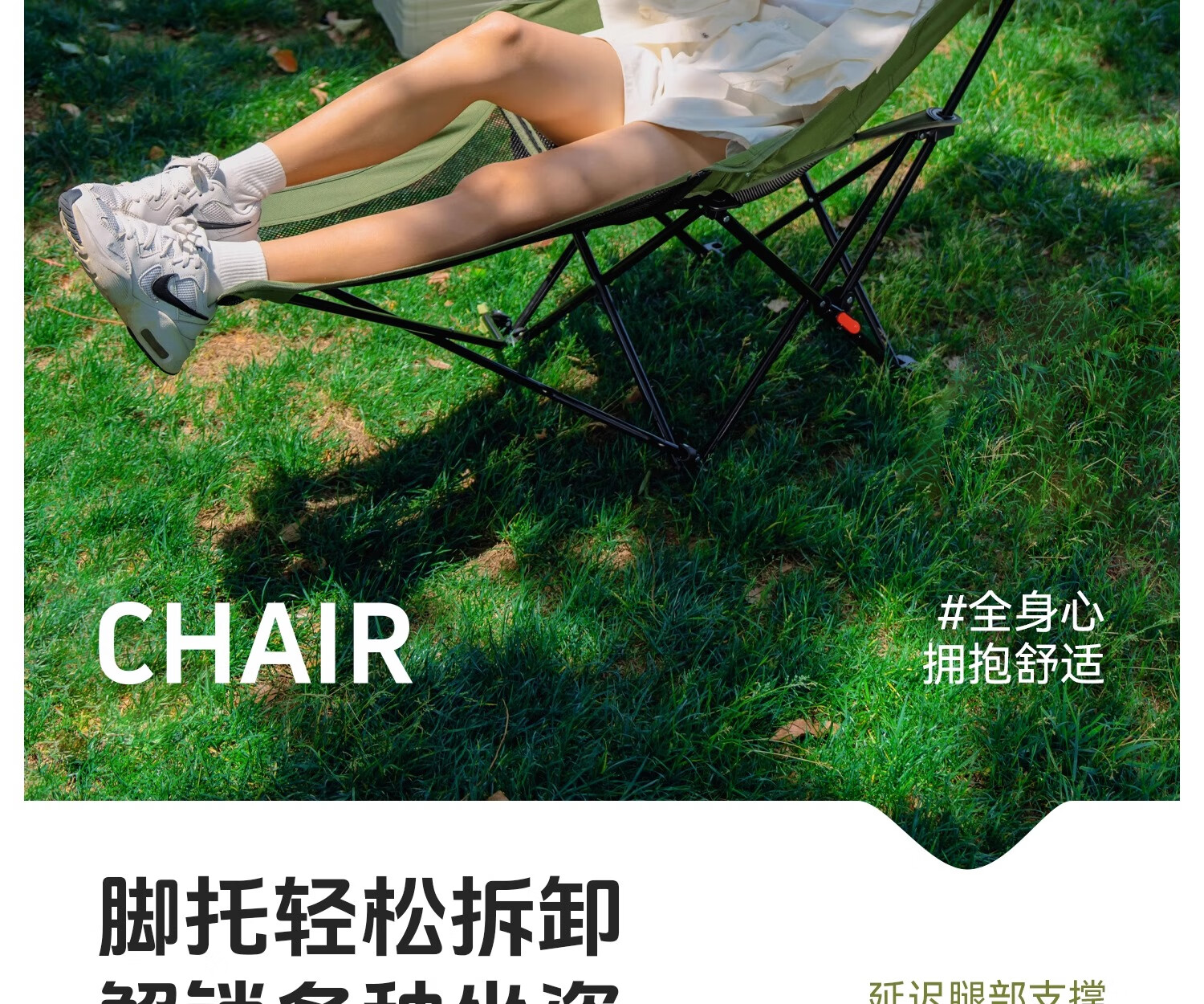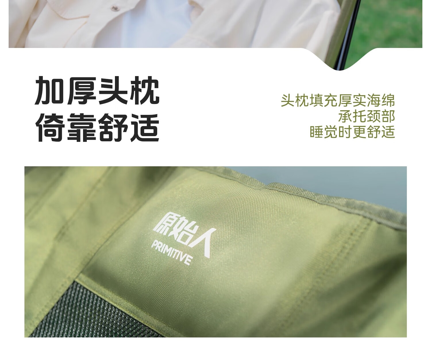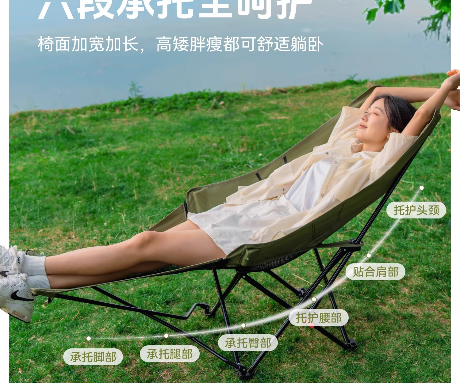 原始人户外折叠椅躺椅露营椅子月亮椅便携办公室午休钓鱼沙滩休闲 网纱绿【加固椅面 三档可调】