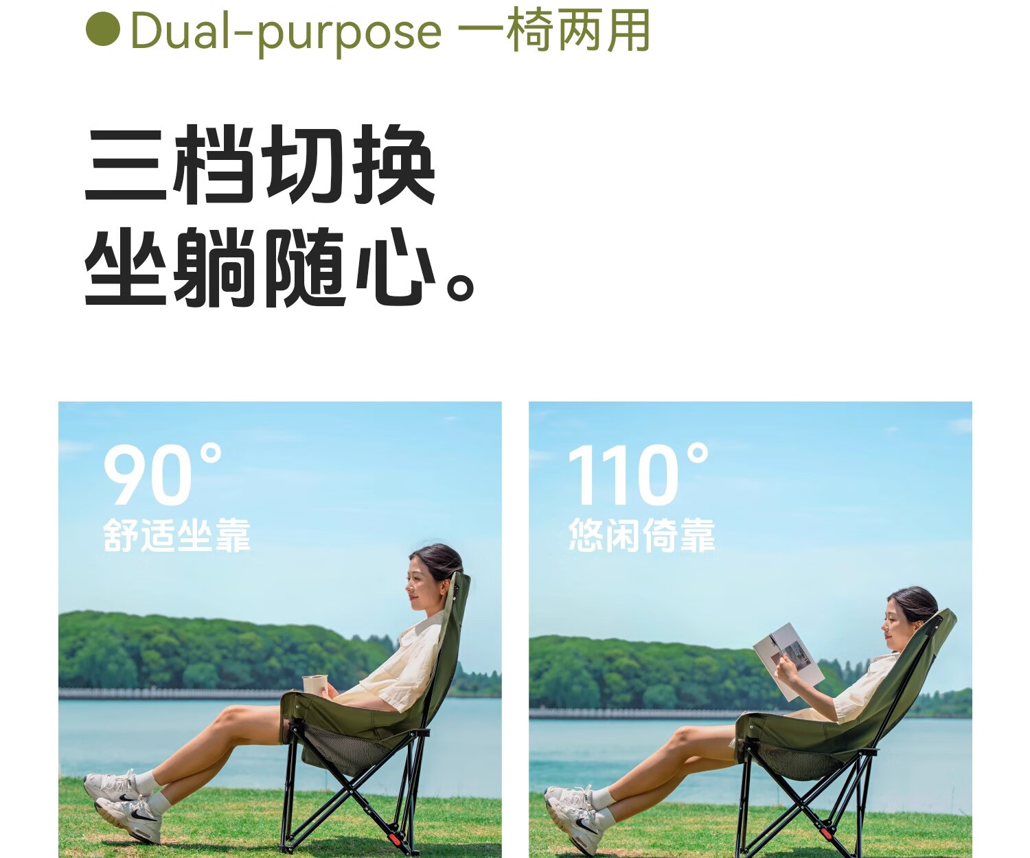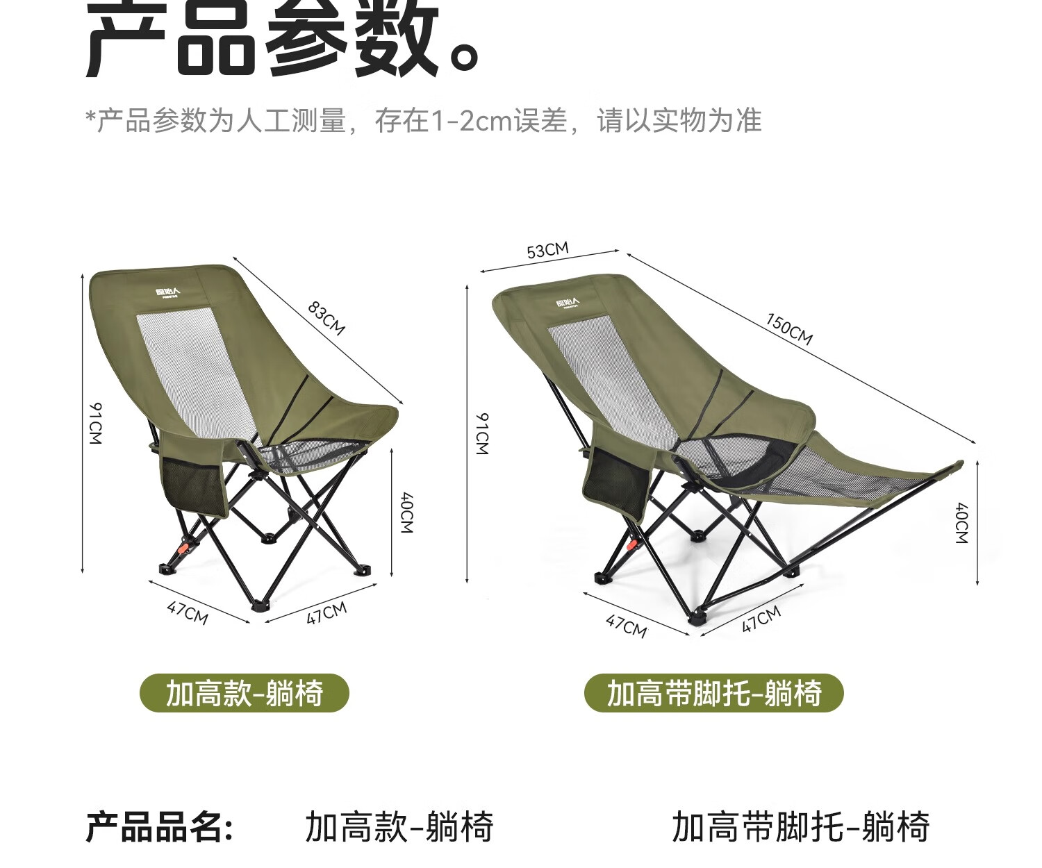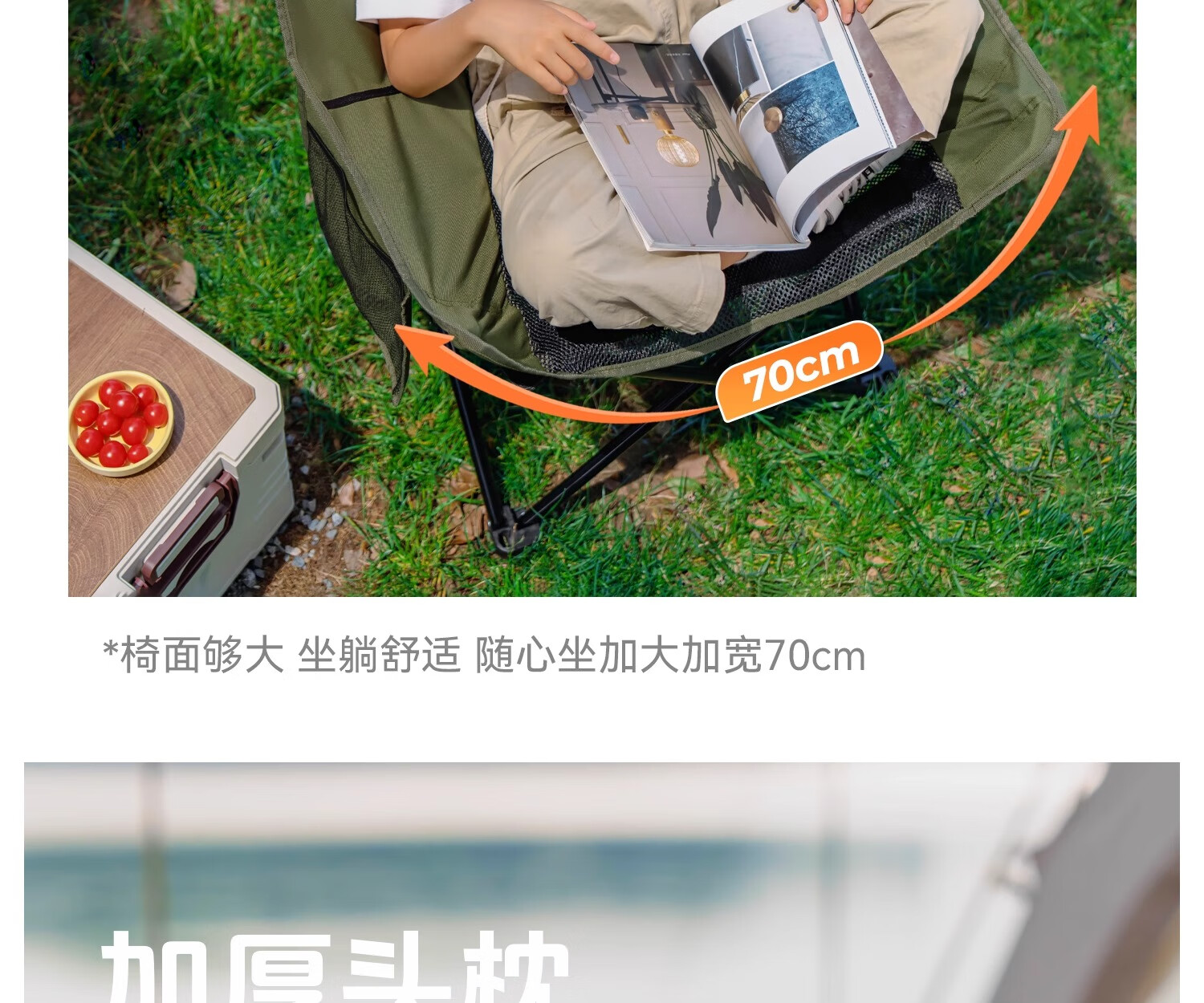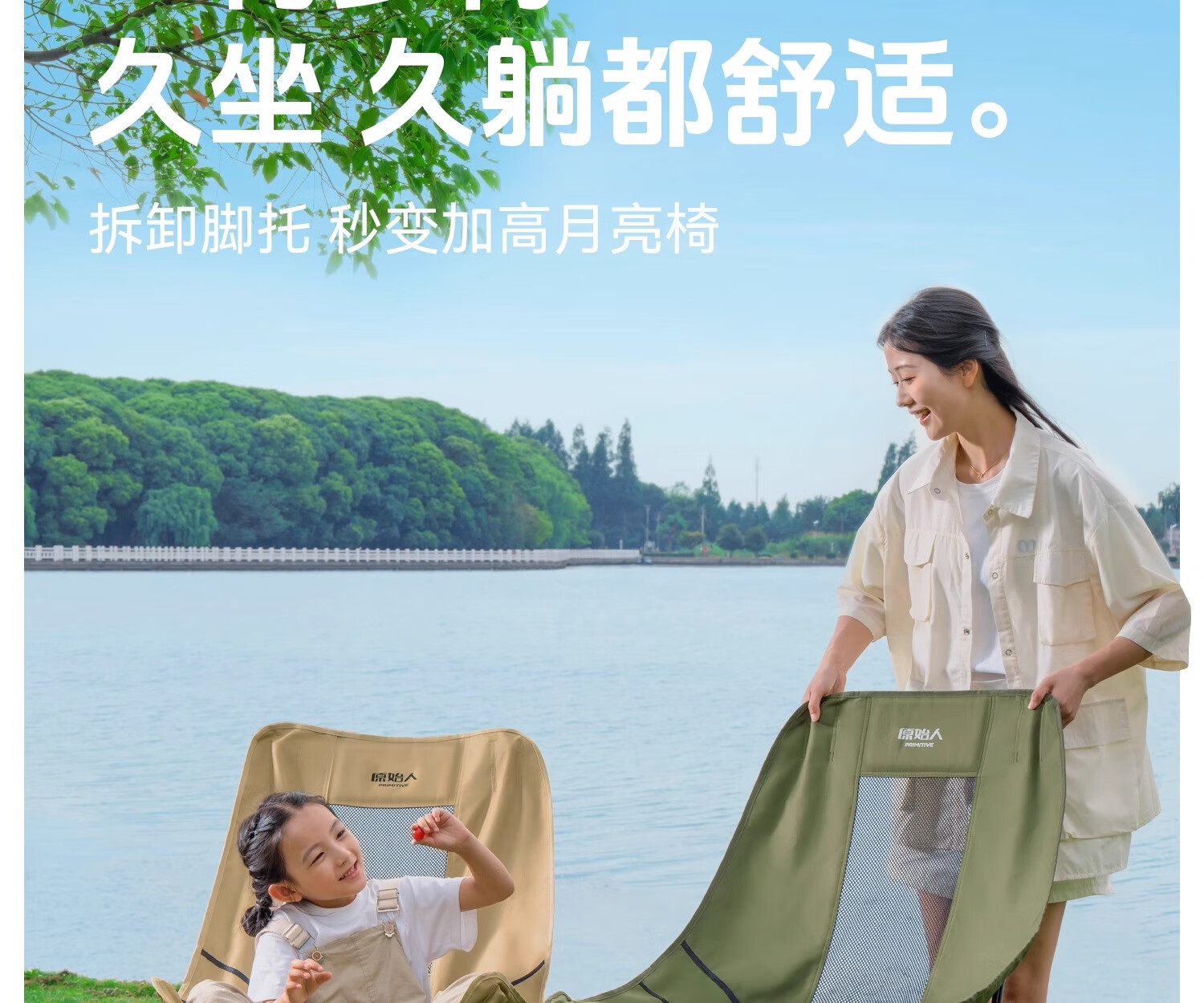 原始人户外折叠椅躺椅露营椅子月亮椅便携办公室午休钓鱼沙滩休闲 网纱绿【加固椅面 三档可调】