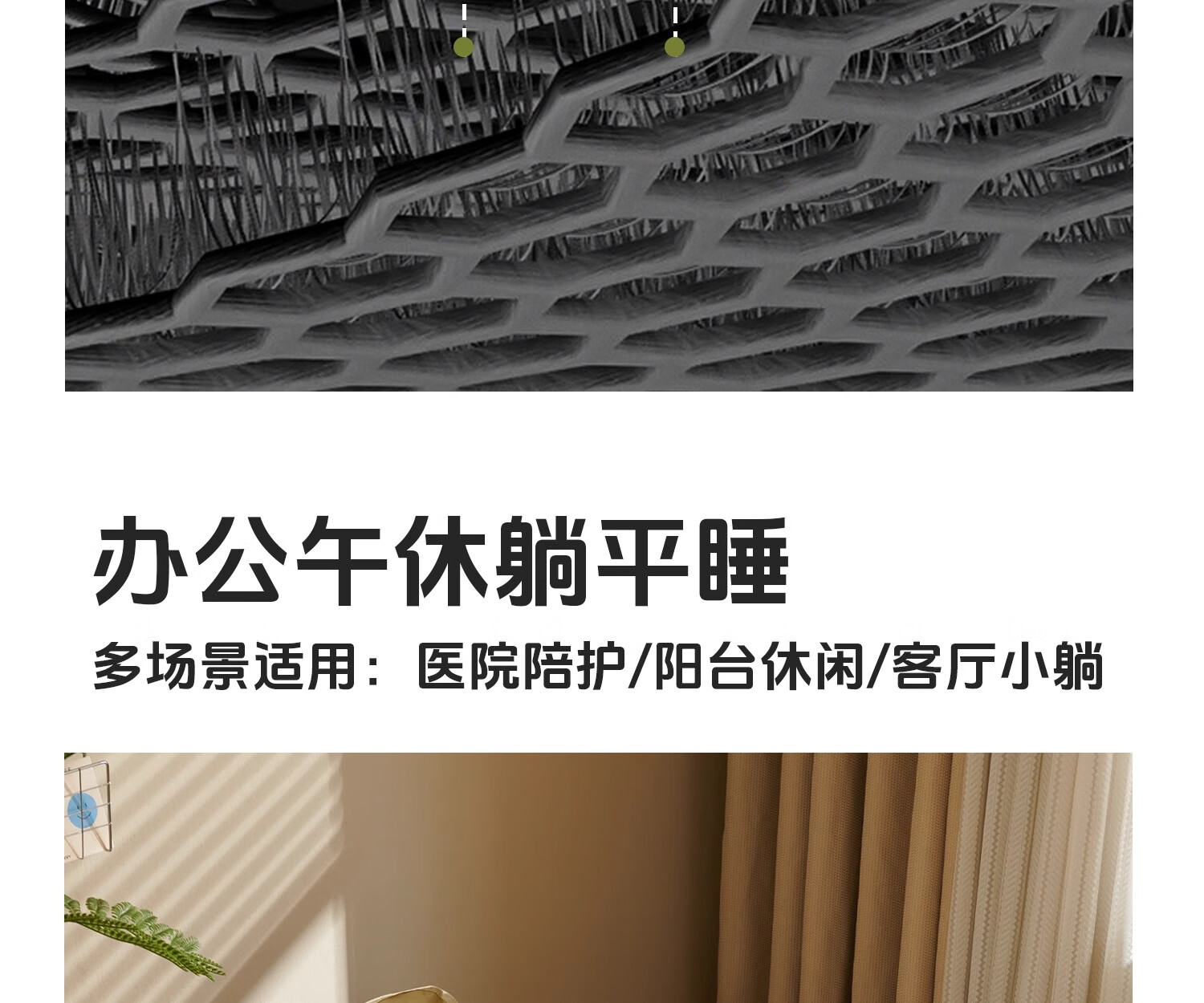 同事买了一款放在办公室午睡用,反馈非常舒适,买了一款放在家里午休用,很不错的一款躺椅,承重很好,坐还是躺都很稳!很舒服!贴合人体的设计非常科学,推荐推荐