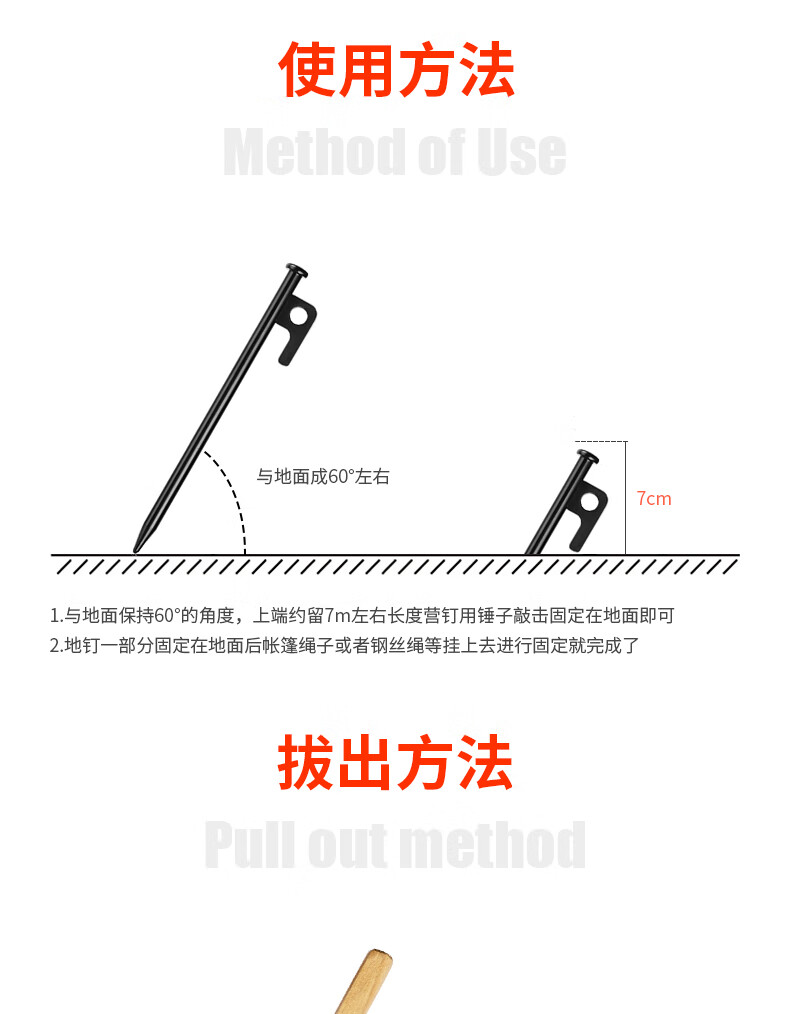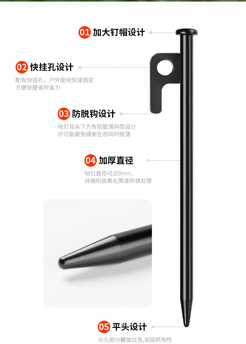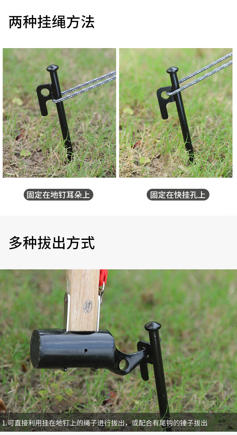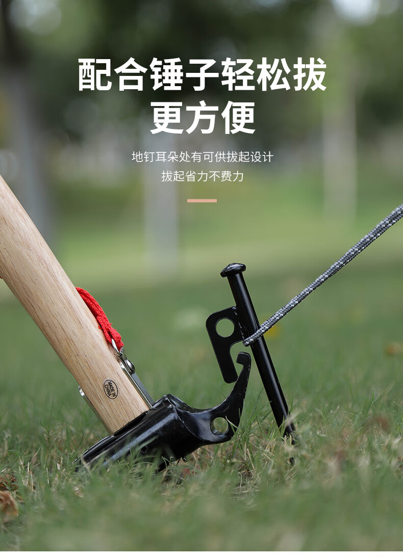 卡瓦图户外加粗帐篷地钉黑色钢钉露营配件沙滩营钉天幕地钉6支装30cm 野营鹰嘴锤+防脱绳