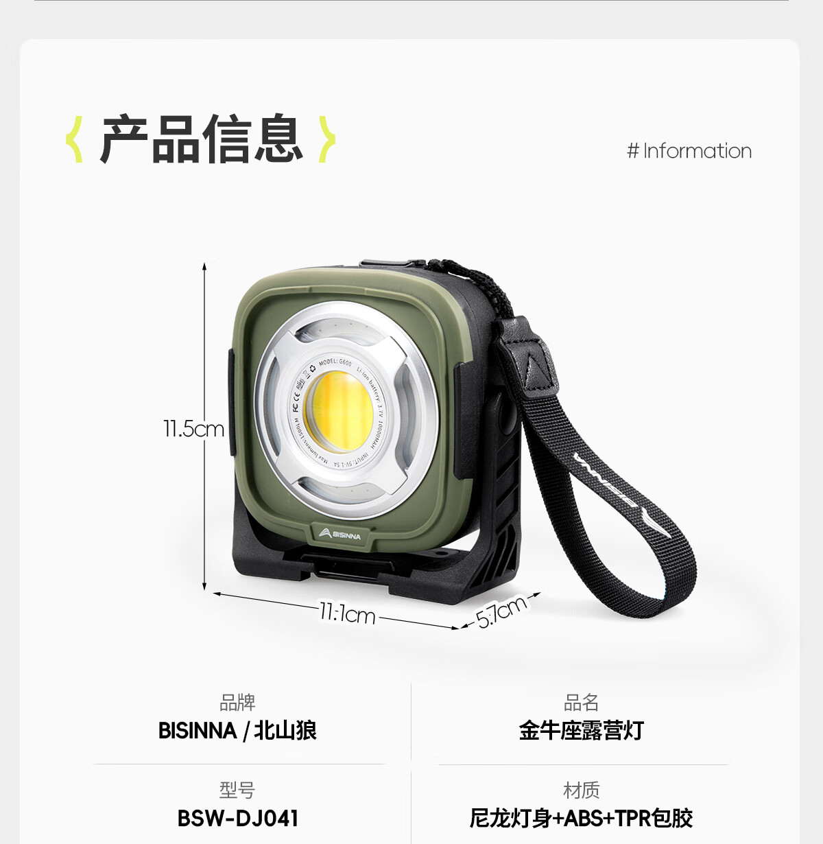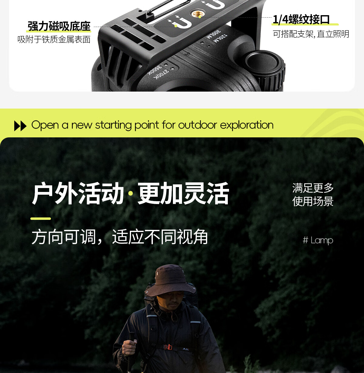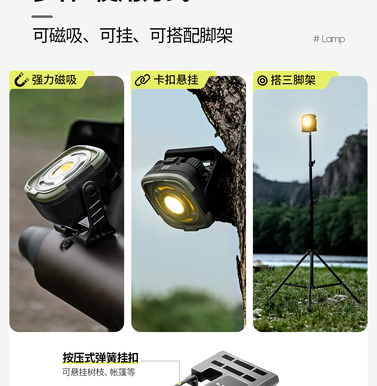 北山狼 户外露营灯 帐篷营地灯充电应急灯氛围灯野外照明灯磁吸式 烬苔绿【强光续航8~10h】