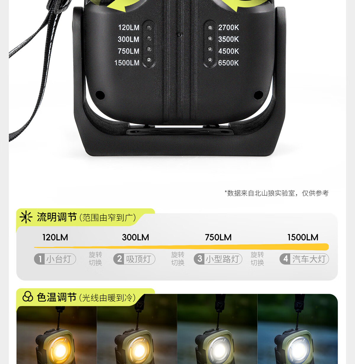 北山狼 户外露营灯 氛围灯 营地挂式LED手提灯 帐篷照明灯充电超长续航 白色【充电款】