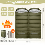 北山狼 成人睡袋冬季石墨烯加厚加宽防寒户外露营午休两用单人被子 双人款-5.0Kg风松绿【送植绒枕】