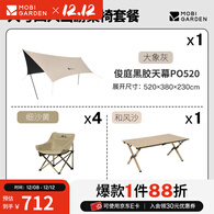 牧高笛(MOBIGARDEN)俊庭黑胶天幕 户外露营蝶形防晒遮阳布防雨大空间黑胶天幕 俊庭黑胶PO520天幕*1+月亮椅*4+碳钢蛋卷桌L套餐