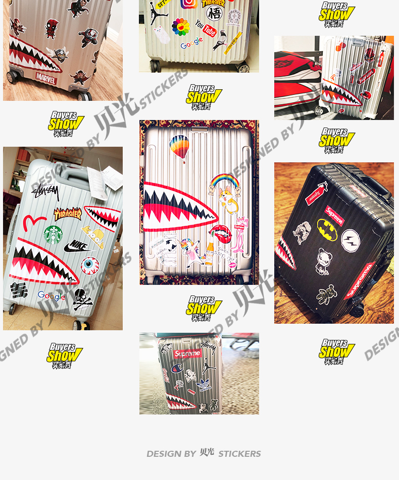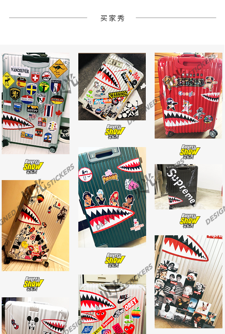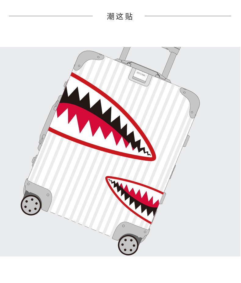 贝光个性潮牌大鲨鱼旅行箱贴纸行李箱笔记本电脑车身划痕遮挡贴防水