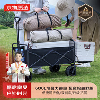 京物露营车推车可折叠户外营地车儿童可躺野营大拖斗拓展后开摆摊旅行 600L双刹 全钢车架(黑色)