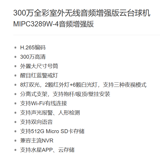 水星系列MIPC3289W-4音频增强版 300万全彩室外无线音频增强版云台球机 MIPC3289PW-4音频增强版 MIPC3289