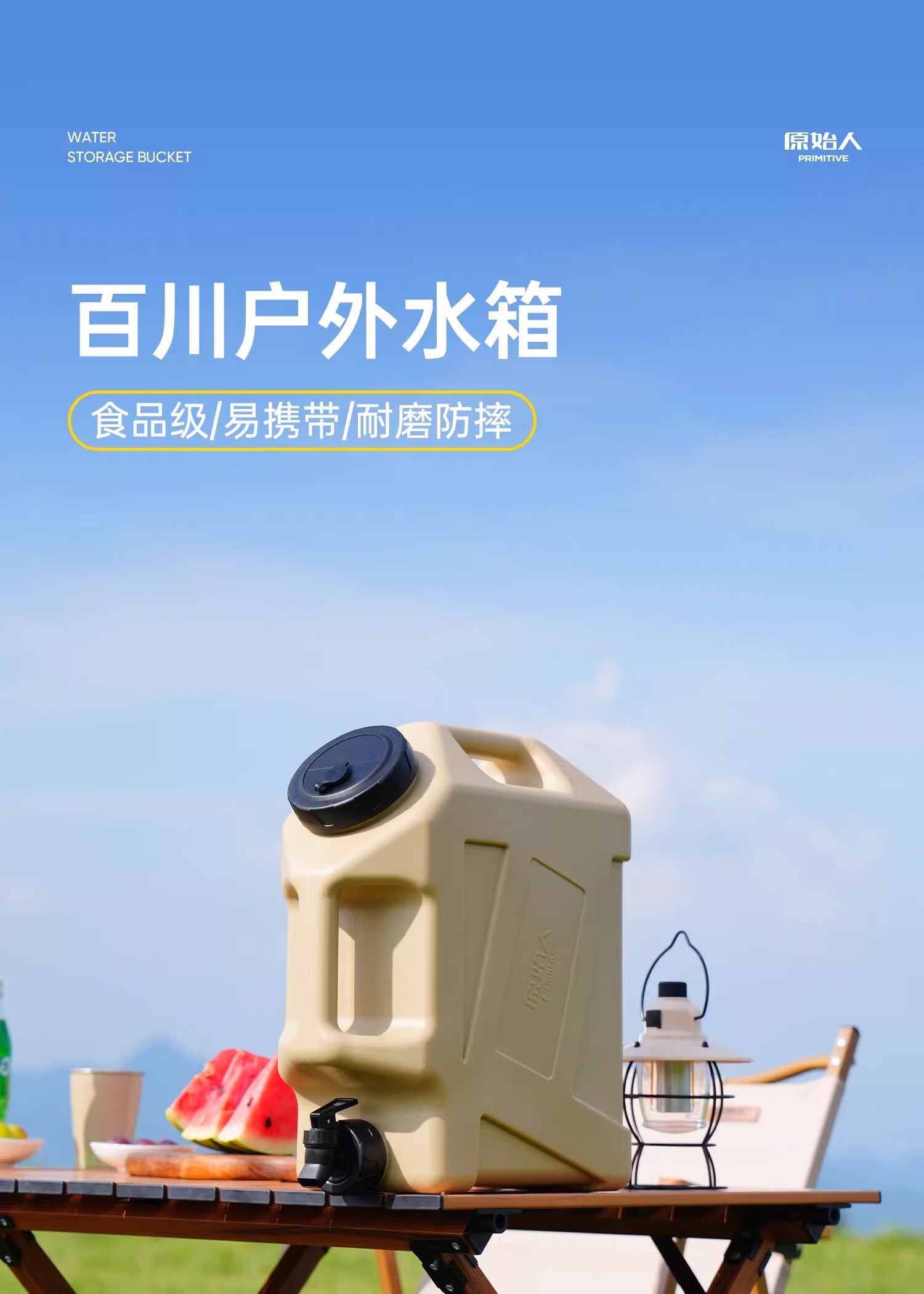 原始人户外水桶带龙头车载水箱露营储水桶自驾游便携纯净水桶装水 12L-食品级水箱