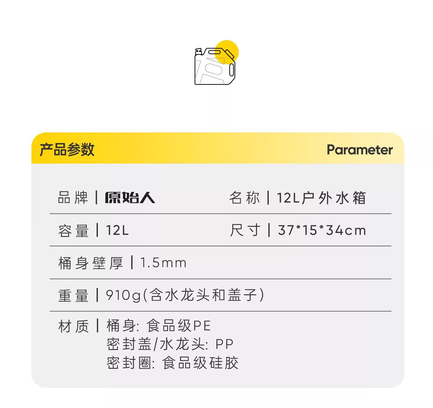 原始人品牌还是比较好的,已经不是第一次购入他们家的装备了,就是物流比较快速到手,做工也是比较好的,希望质量可以用比较久,喜欢露营户外的朋友可以买个,也可以平时用于停水时刻的紧急使用,带个水龙头的还是比普通水桶好用的