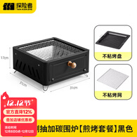 探险者围炉煮茶套装户外烧烤炉便携式庭院侧抽加碳烤炉家用全套煮茶围炉 侧抽加碳围炉【煎烤套餐】黑色