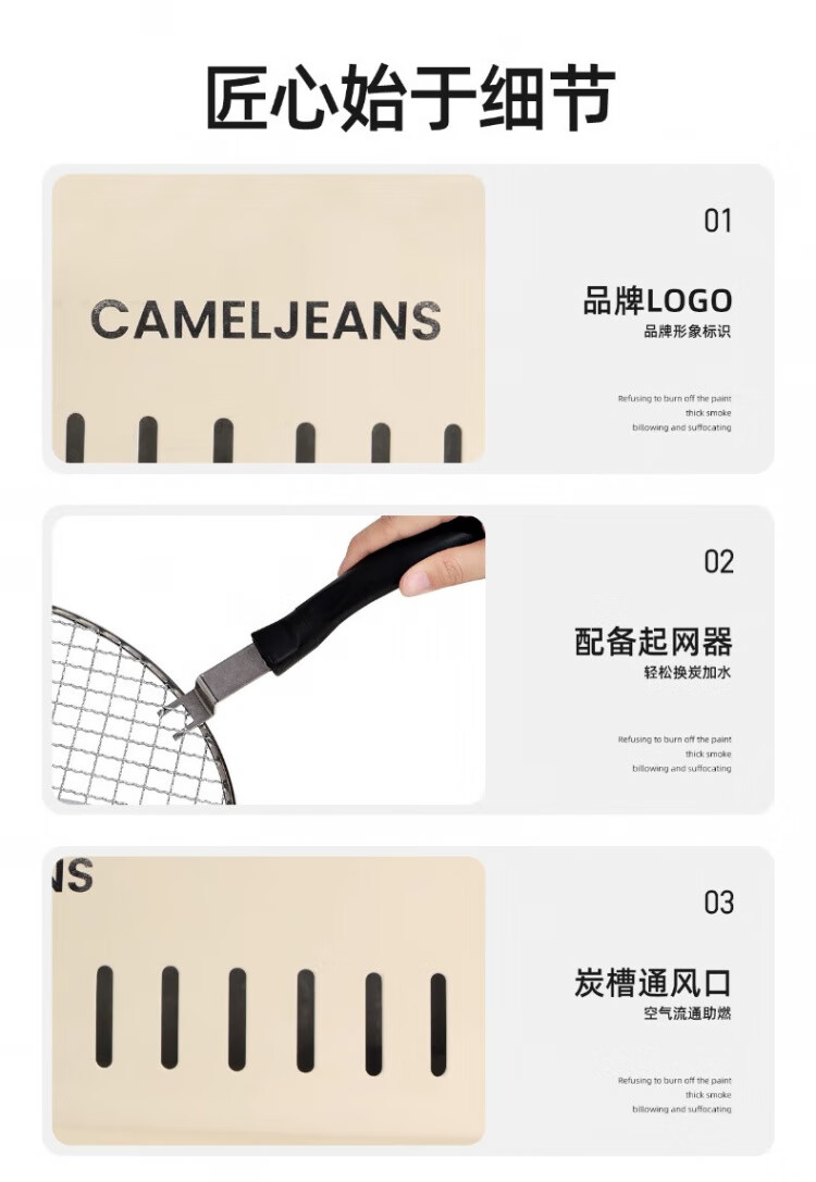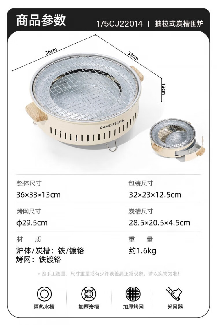CAMELJEANS围炉煮茶烧烤炉家用户外露营烤肉烤串2025新款无烟便携 抽拉式烧烤围炉-米黄-175CH22014