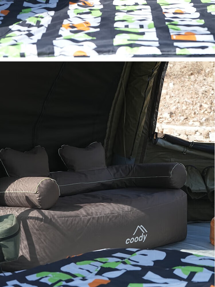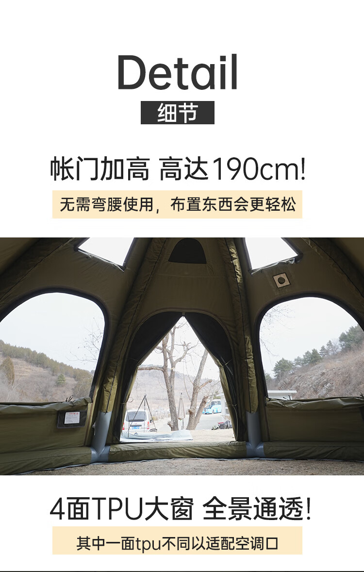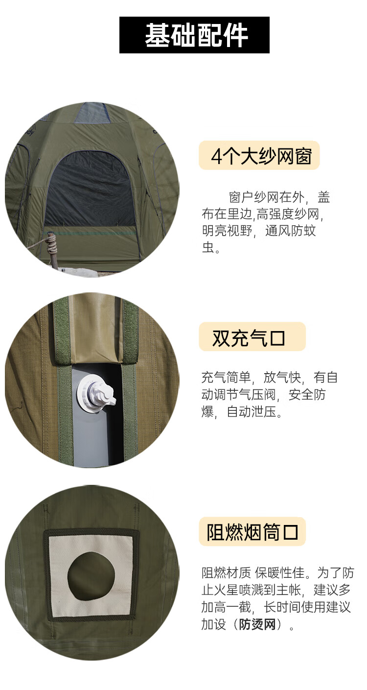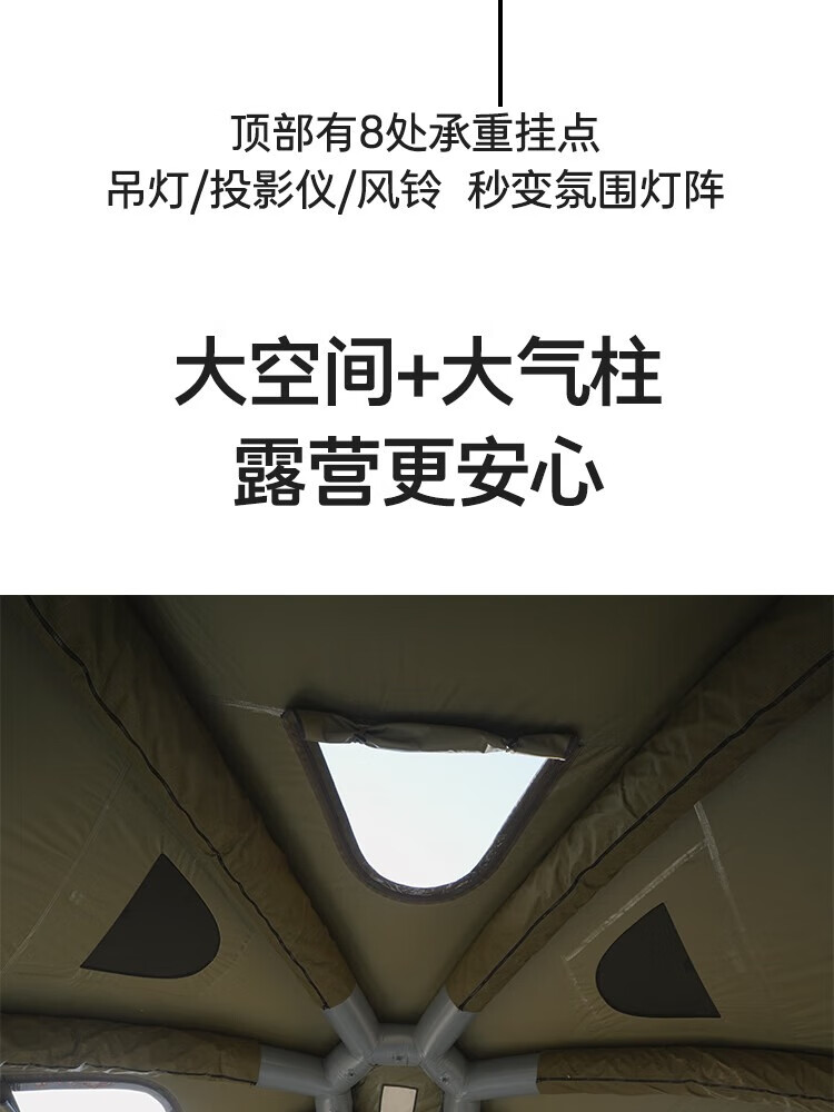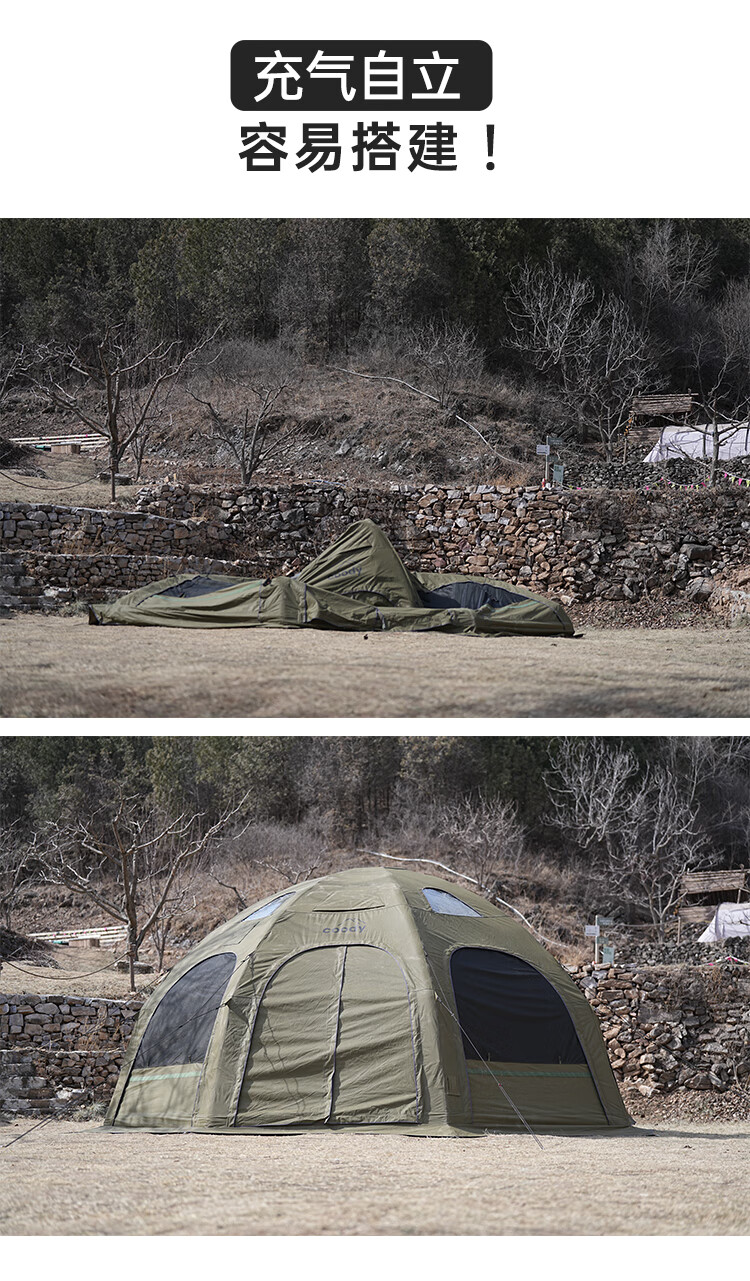 军鑫科技军鑫酷迪coody10㎡充气天幕门厅露营过夜气柱拓展客厅防风防雨帐 军绿色门厅TPU