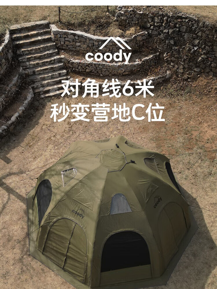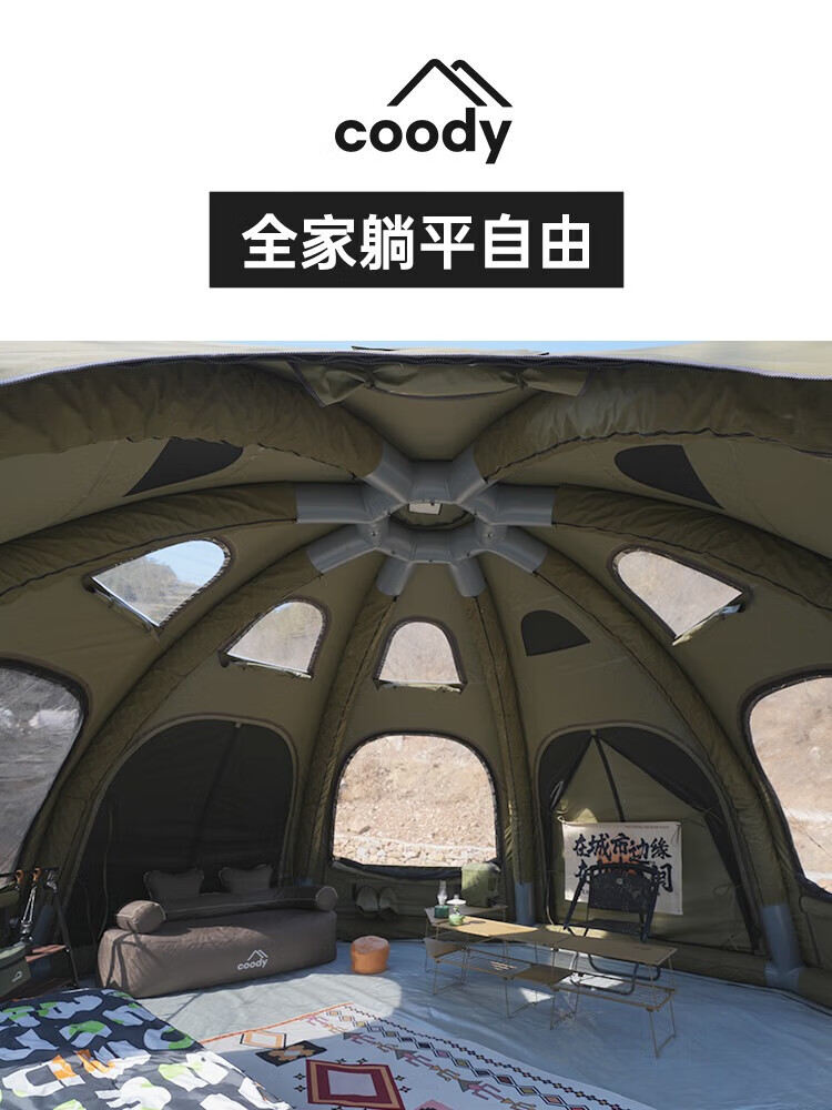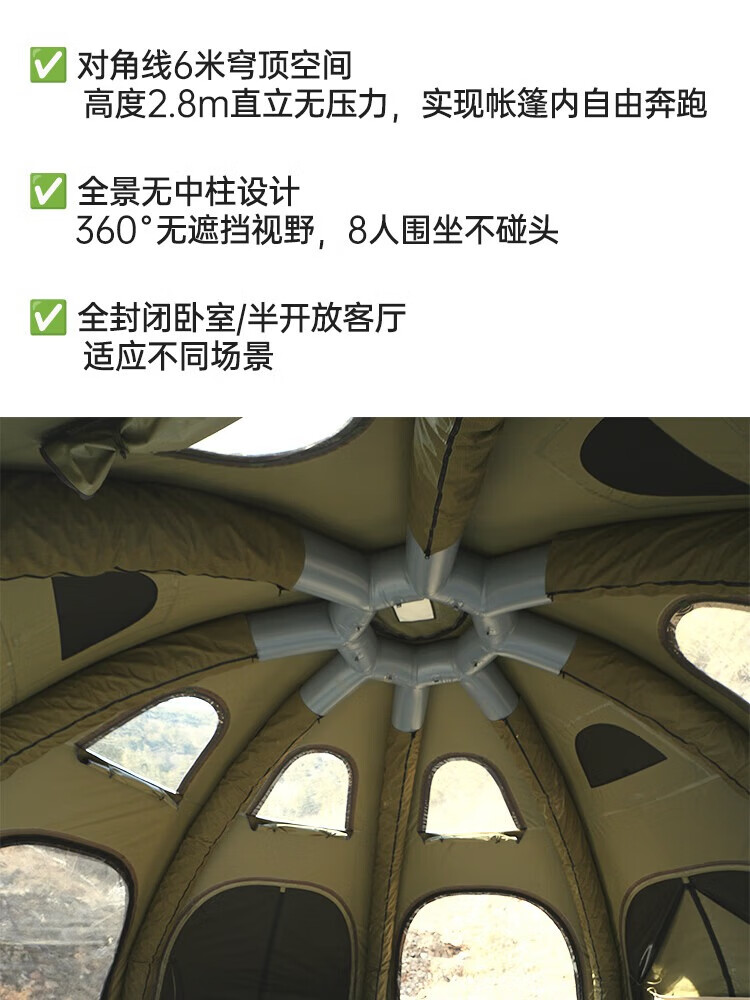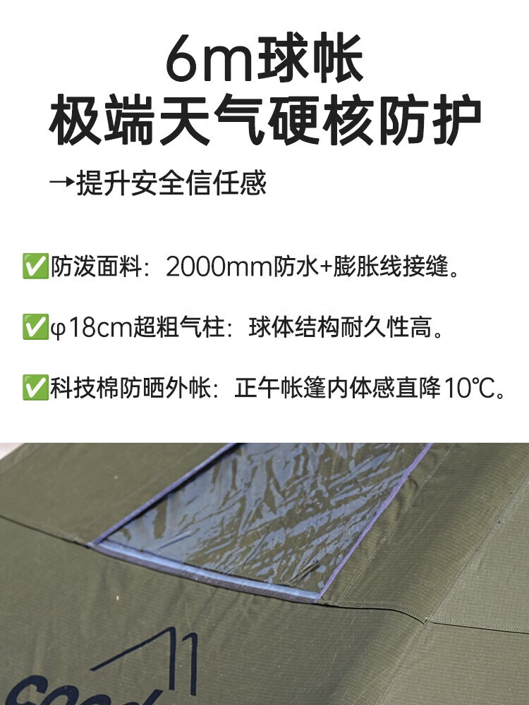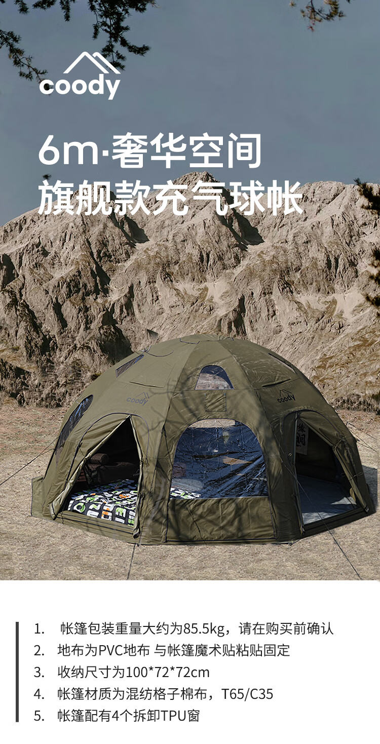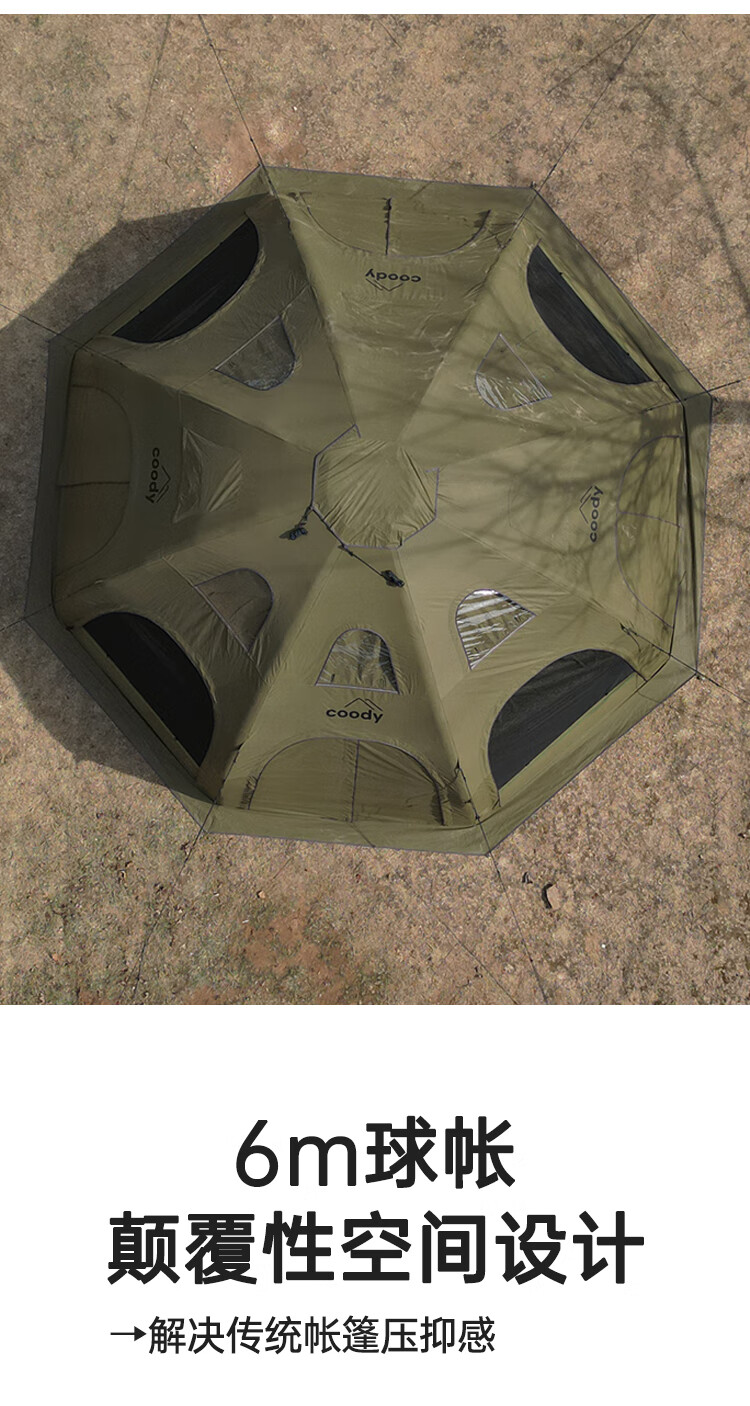 军鑫科技军鑫酷迪coody6m球形充气帐篷营地露营大空间加高耐用过夜帐篷 coody-6米球军绿色