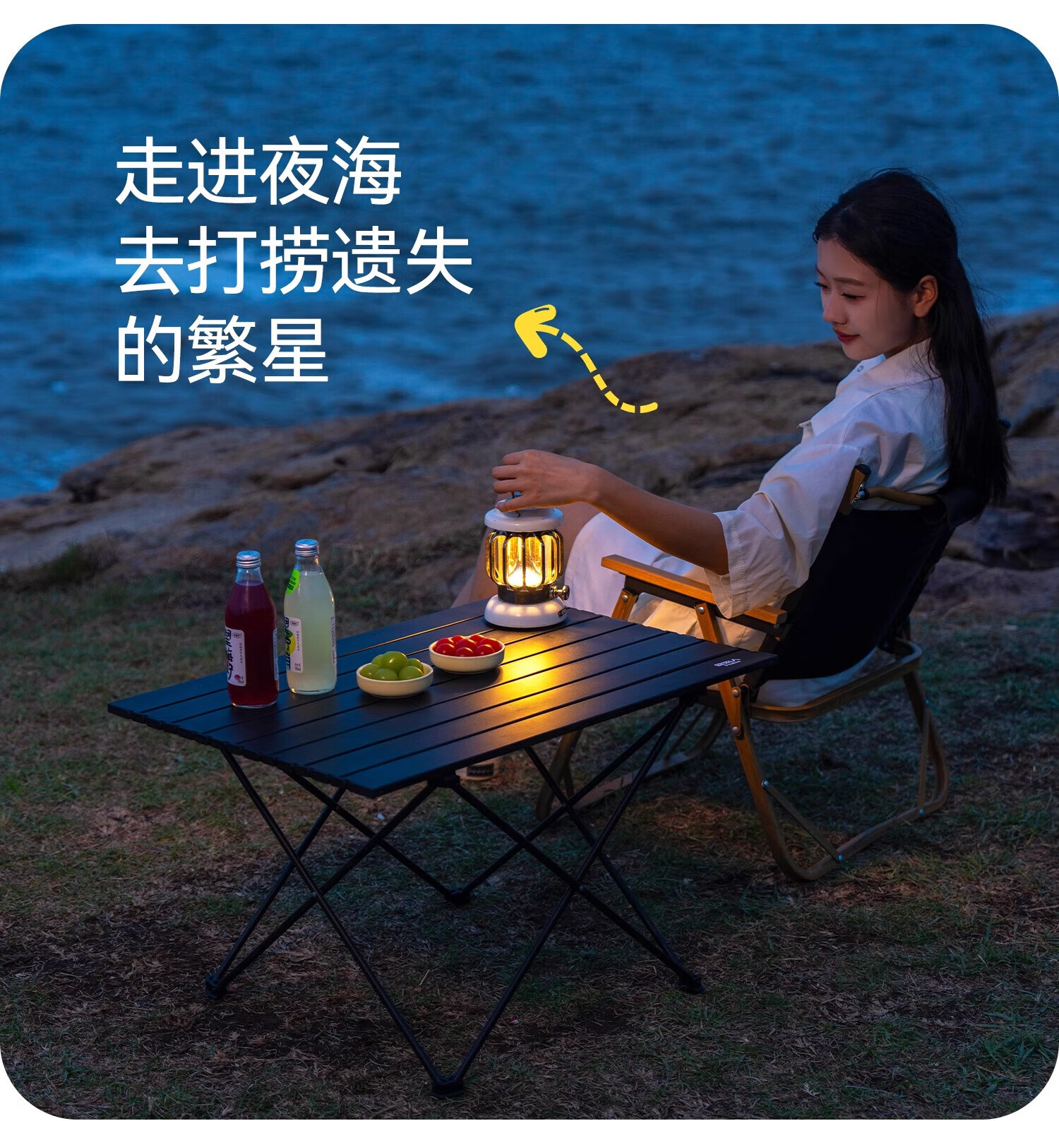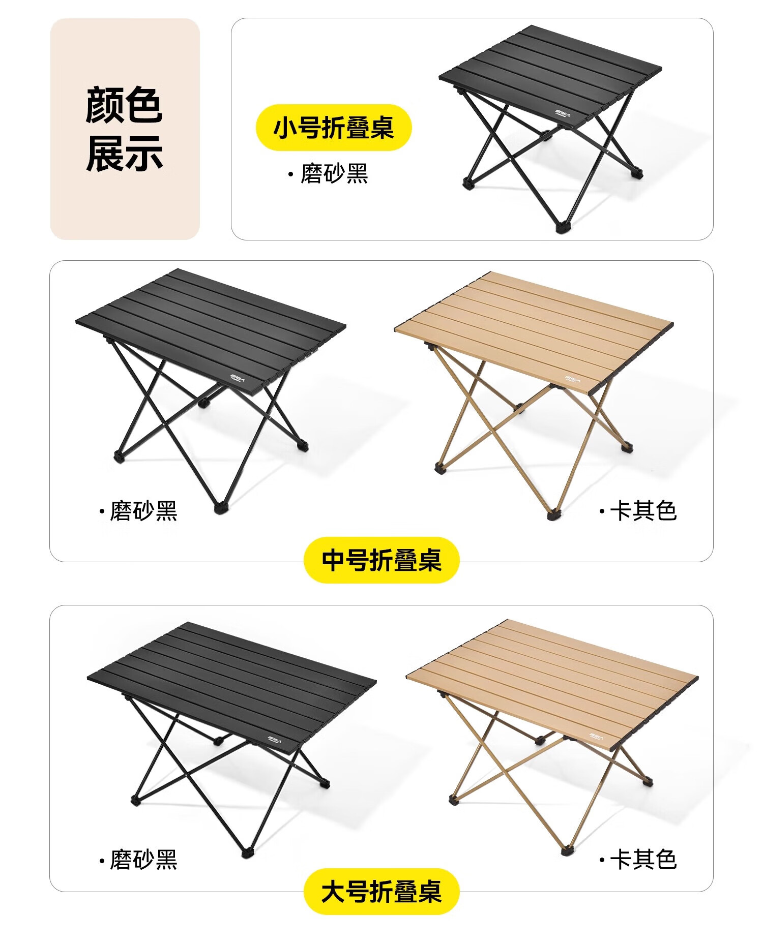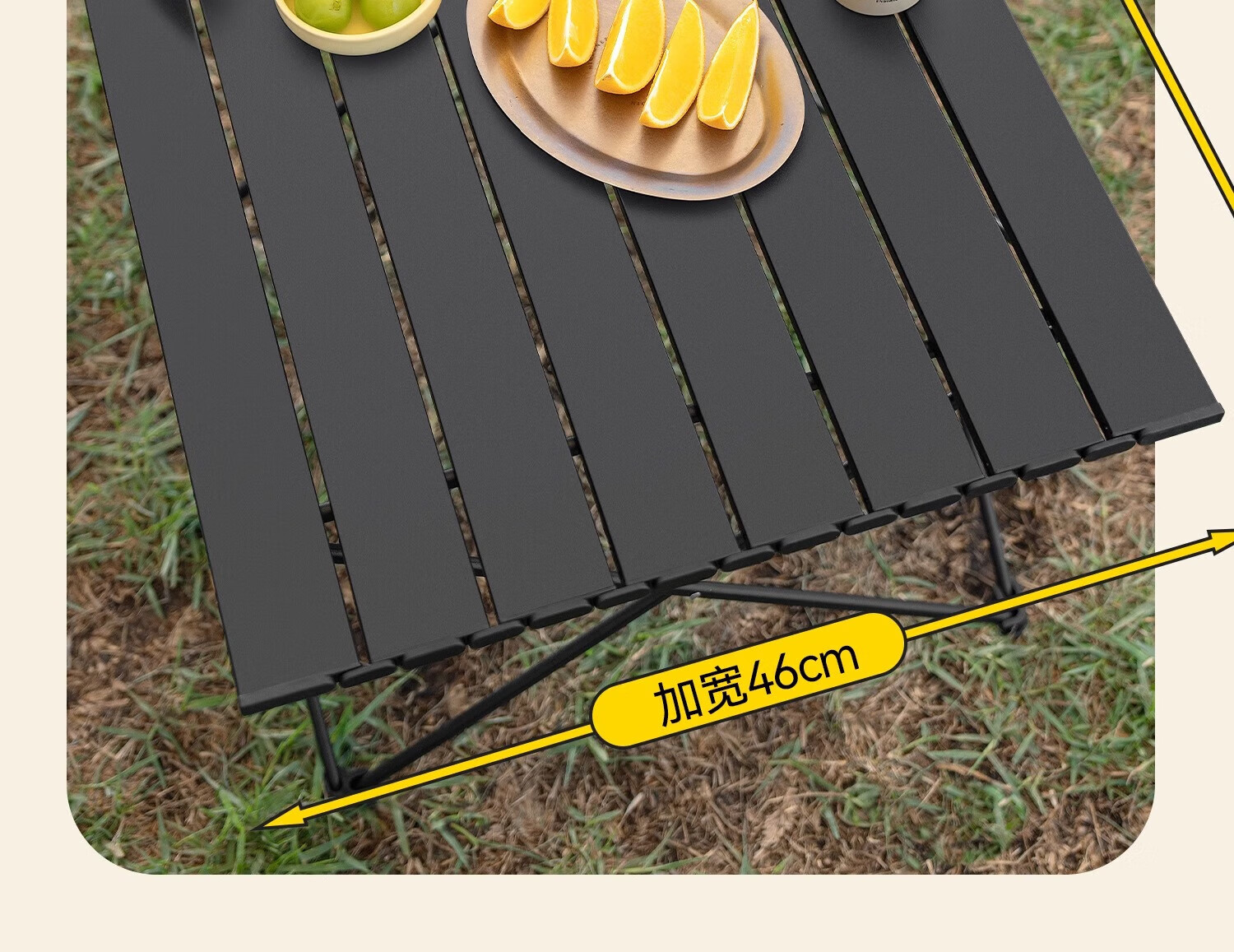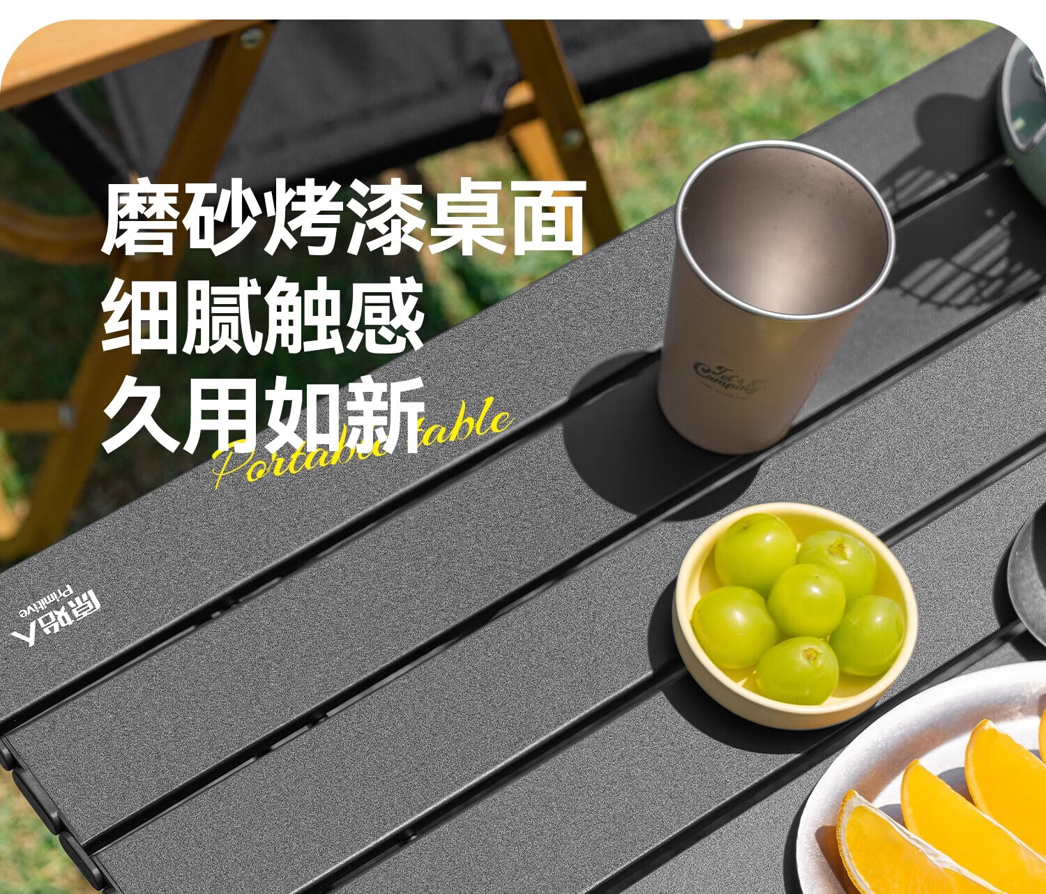 原始人户外折叠桌铝合金便携式蛋卷桌野餐桌子露营桌椅套装野炊餐桌装备 【中号】米白磨砂折叠桌含收纳袋