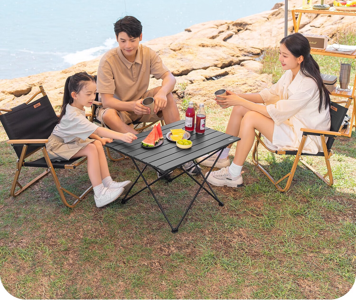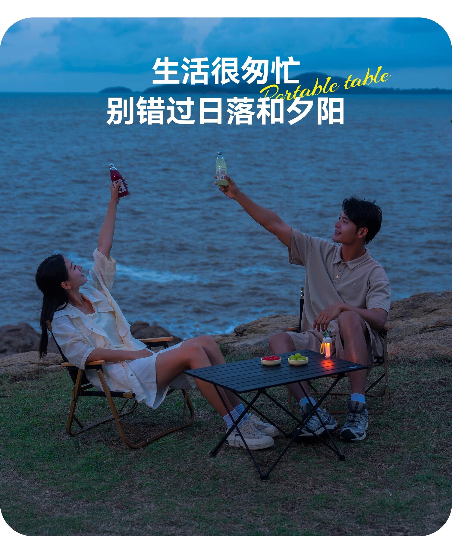 原始人户外折叠桌椅套装露营桌椅野餐椅子便携式野营装备蛋卷桌 小号磨砂黑-加厚款【1-2人适用】