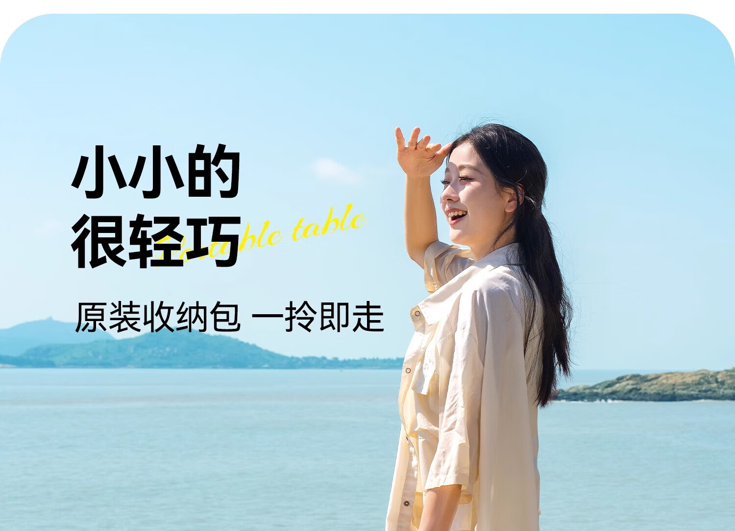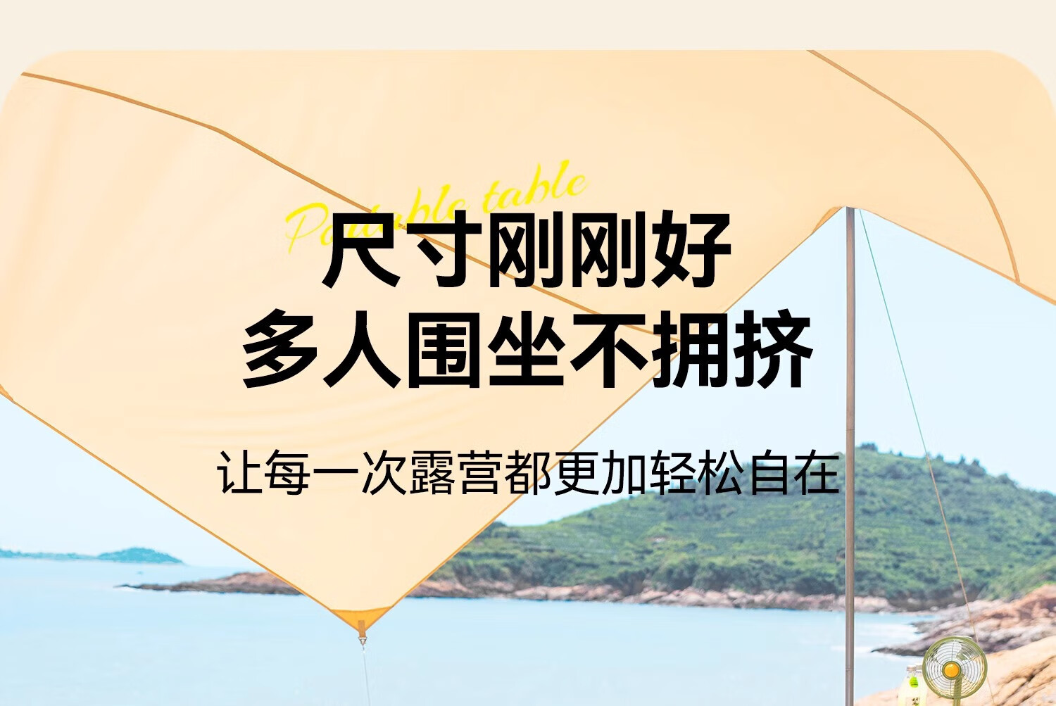 BA户外折叠月亮椅子阳台休闲野餐晒太阳桌子套装家用靠背懒人钓鱼 黄小号方桌(送包)+YS 【加粗加固】易携带