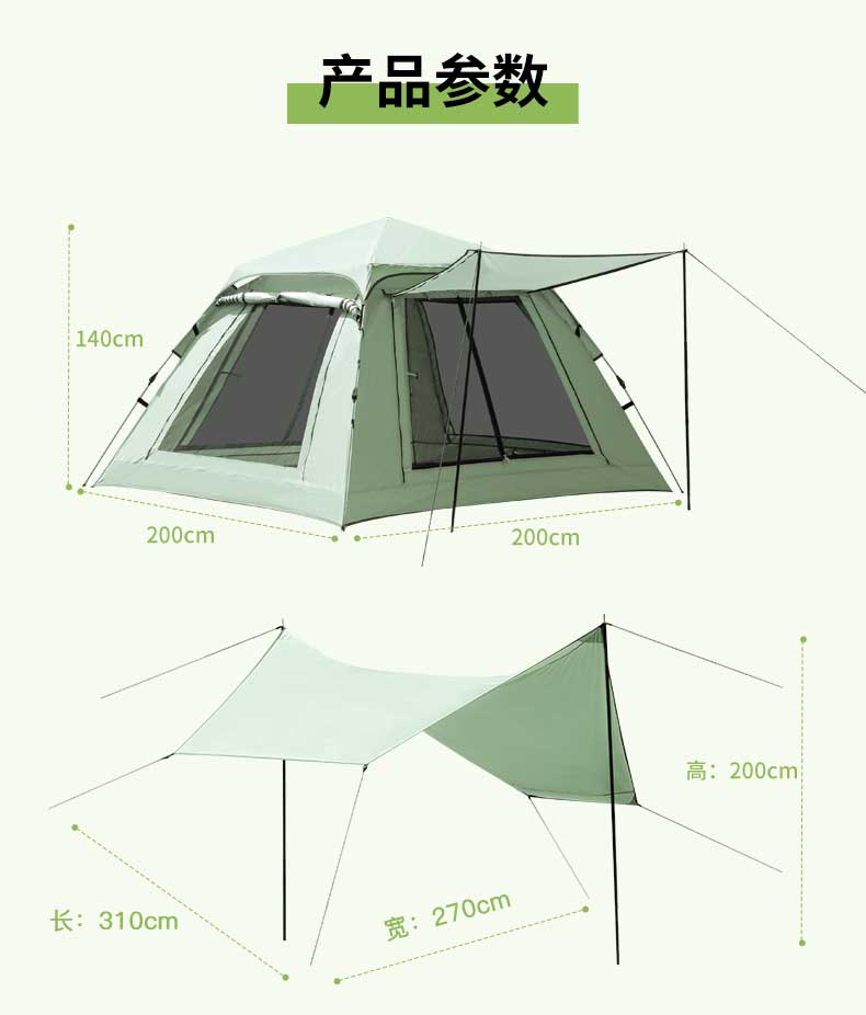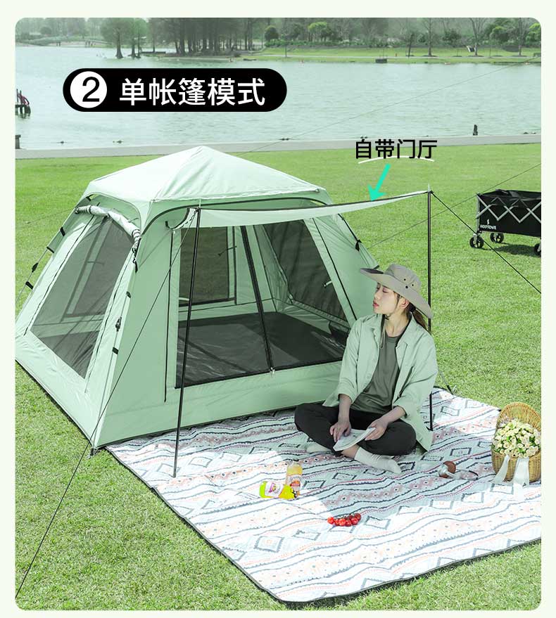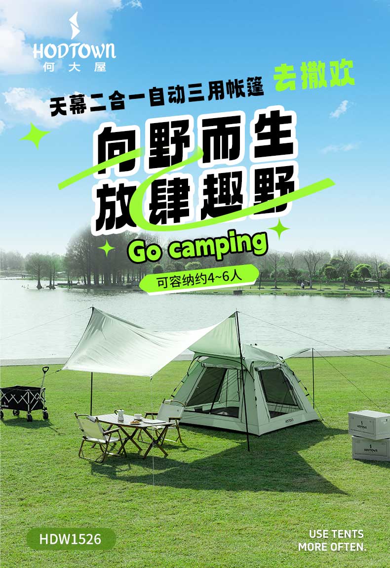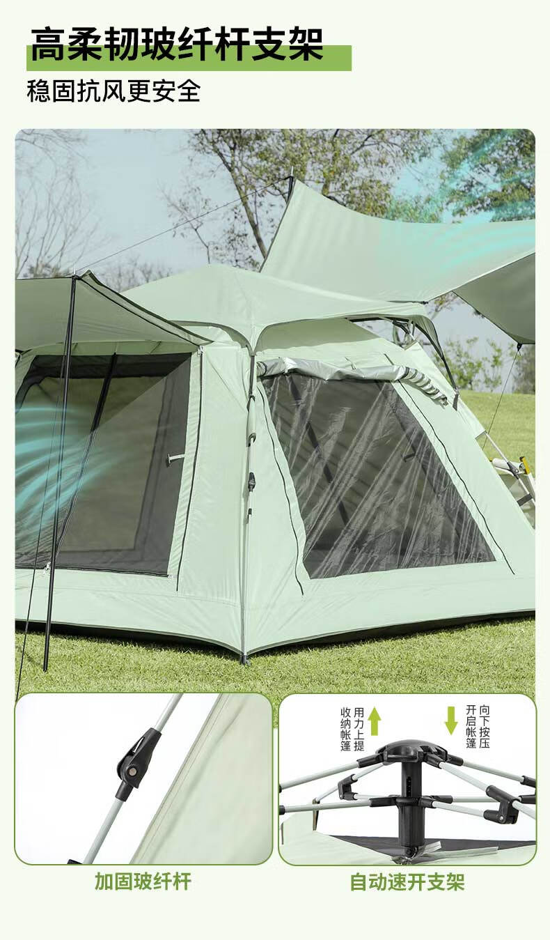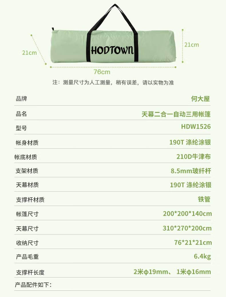 何大屋(Hodtown)户外帐篷天幕二合一全自动速开防晒便携速搭野外公园露营装备帐篷 3-5人一室两厅 HDW1526