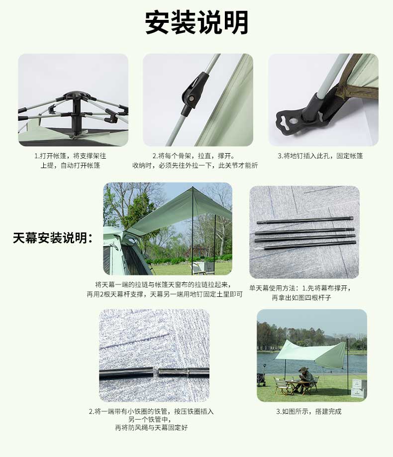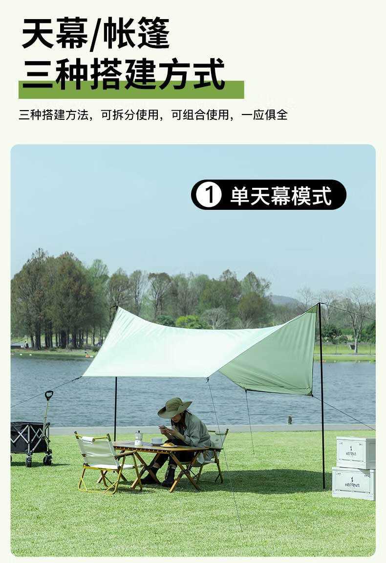 牧高笛(MOBI GAROEN OUTDOOR)牧高笛黑胶天幕露营户外防雨遮阳防紫外大尺寸八角俊庭牛津530 橄榄绿【俊庭440(牛津涂银版)】