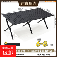 北岳户外折叠桌子便携式蛋卷桌可折叠野餐桌摆摊烧烤桌椅露营用品套装 特大号150cm全黑蛋卷桌-加厚碳钢