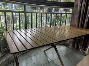 为了出去野餐,又配一个蛋卷桌,看了很多款,小某书做了很多攻略,说的要买铝合金,双层的,到手感觉质感非常好,而且1.2米的长度还可以,可以放很多东西 一家人出行已经非常合适了