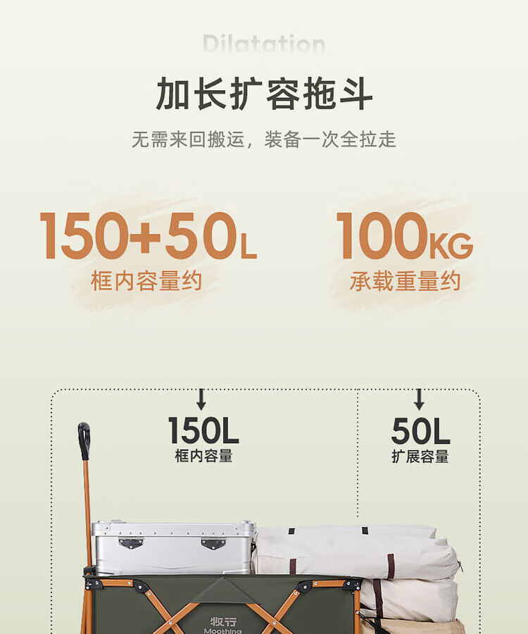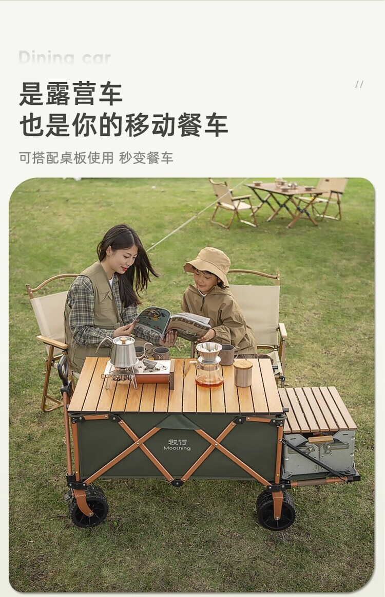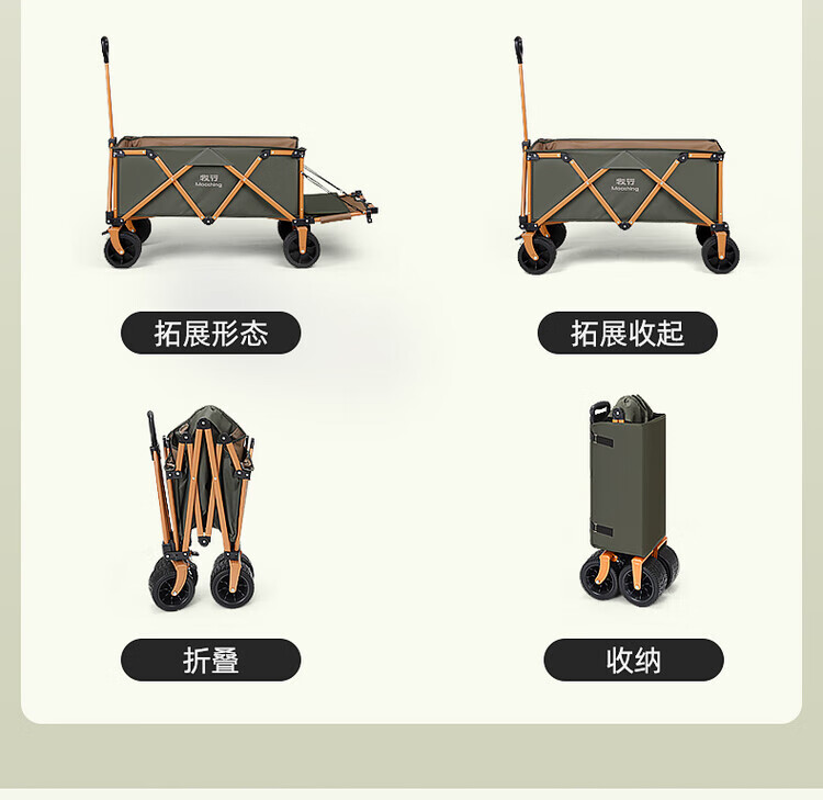 牧行(MUXING)户外露营车折叠野餐营地车手拉旅行车野营拖车GL1儿童可躺 【加长拖斗】GL4卡其色聚拢款+轴承双刹越野轮