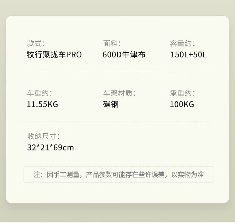 京东京造 150L聚拢型坦克轮可拆轮露营车专用配件遮阳棚雨棚