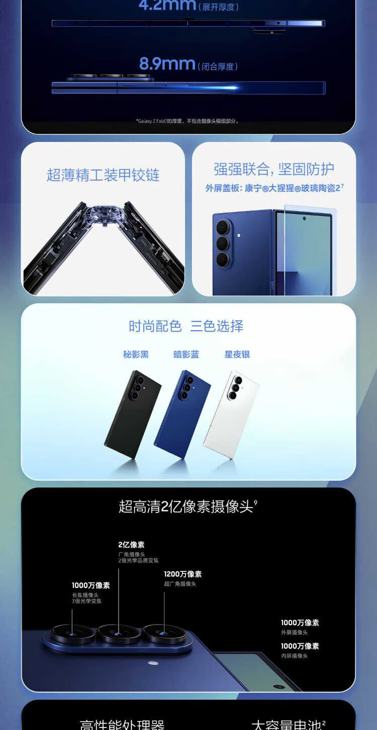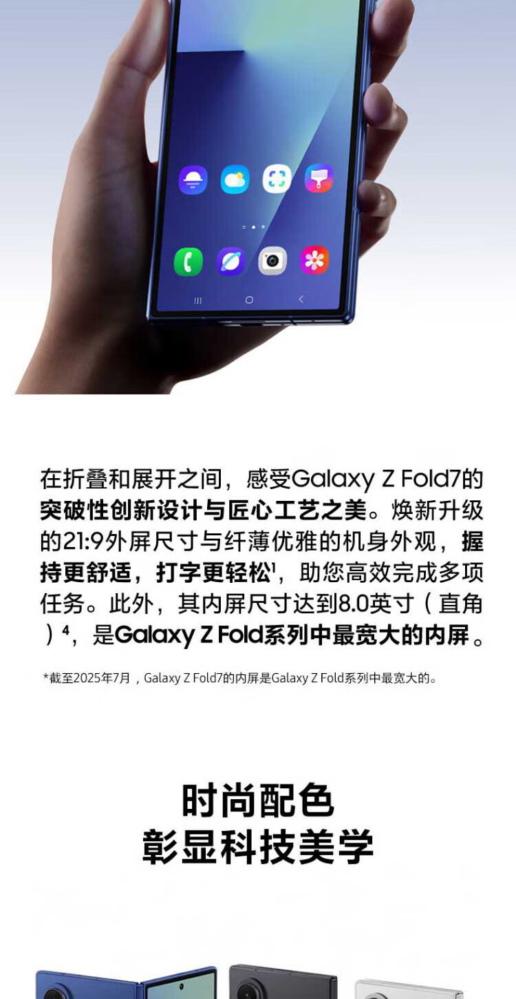 三星(SAMSUNG)Galaxy Z Fold7【24期免息】新品手机超轻薄折叠屏8英寸大屏2亿像素主GalaxyAI刘宪华同款 星夜银 12GB+512GB全网通 免息版本12期
