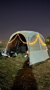 Naturehike挪客星点氛围灯串露营帐篷天幕灯户外野营装饰超长续航防水串灯 20米100灯 这款试用时长 在完全没充电的情况下 下午七八点到清晨六点 手动关闭了 持续时间相当靠谱 质感很棒 灯珠够大 电线也结实 长度对于13平的帐篷足够用 外面俩小时大雨 也完全好用 续航时间:长 光照强度:够亮 还有几种闪烁调节