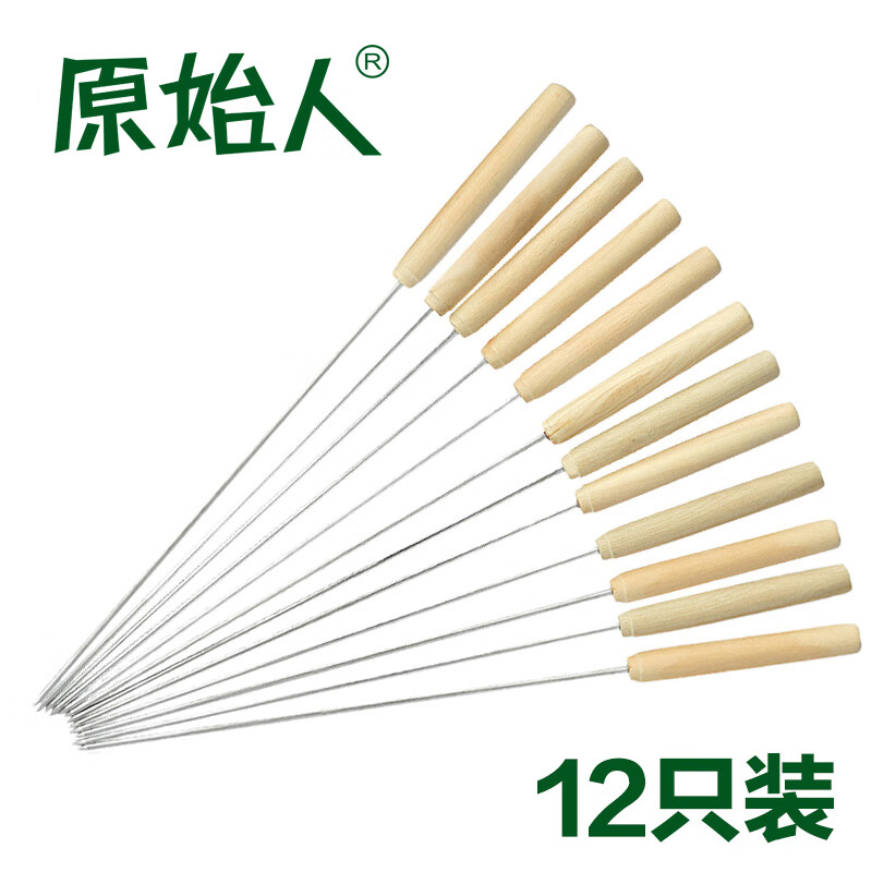 原始人木柄烤针防烫手烤肉签子烧烤签烧烤工具烧烤配件 木柄烤针12只