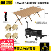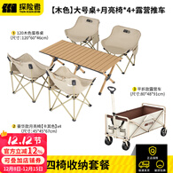 探险者户外折叠桌蛋卷桌便携式露营桌椅野餐桌子套装野炊野营装备全套 蛋卷桌(120cm)+月亮椅*4+露营推车