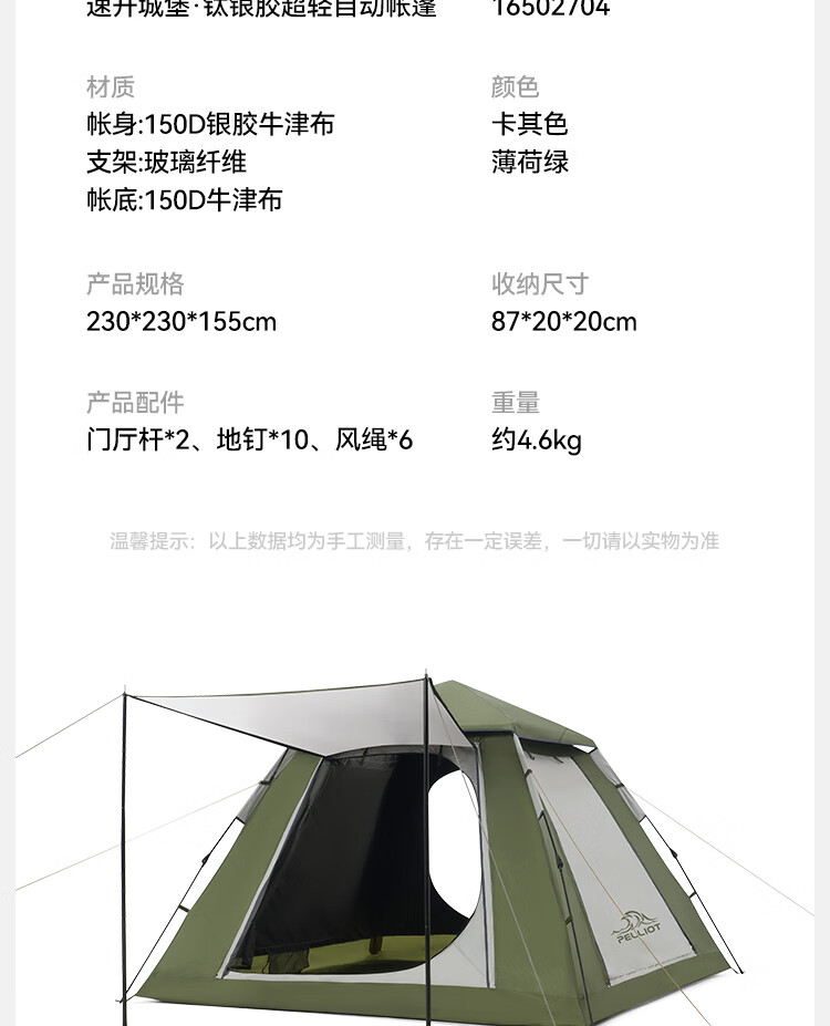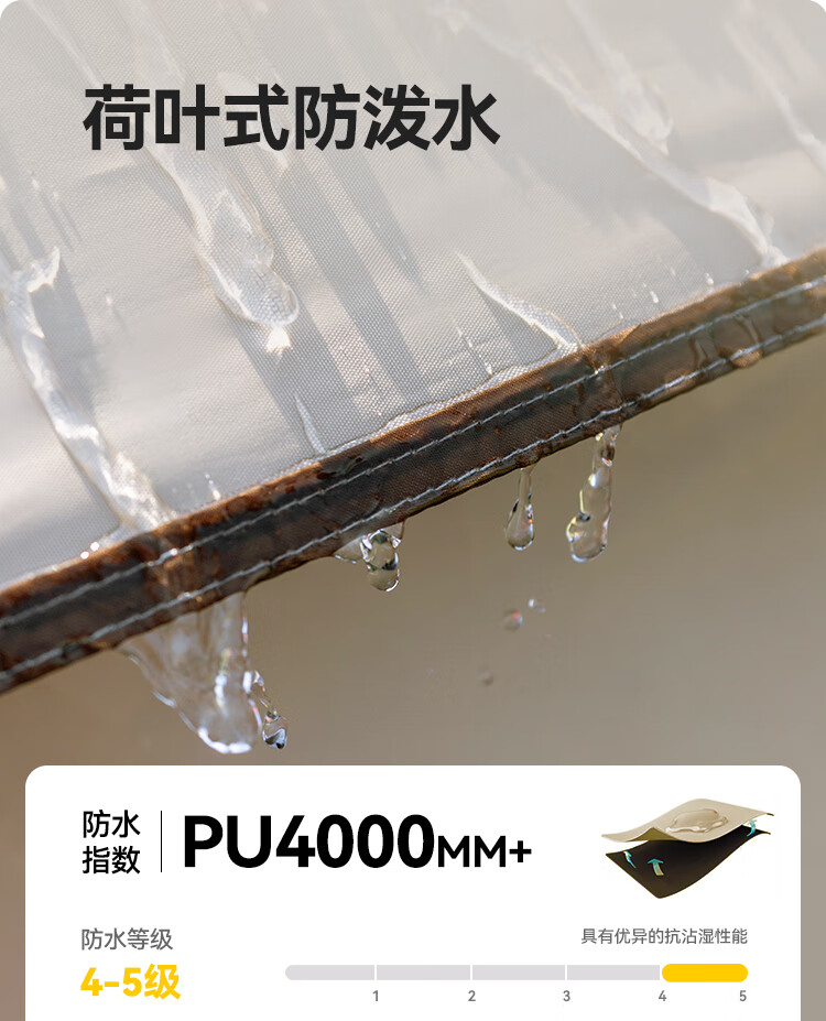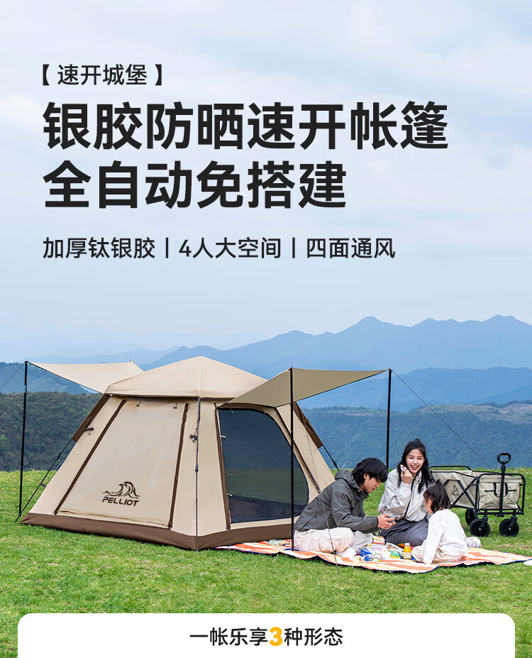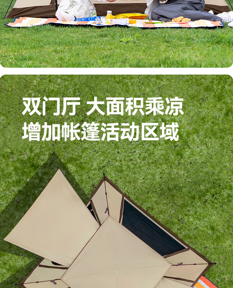 伯希和(Pelliot)户外银胶帐篷天幕二合一露营折叠便携野营过夜16502704 卡其色