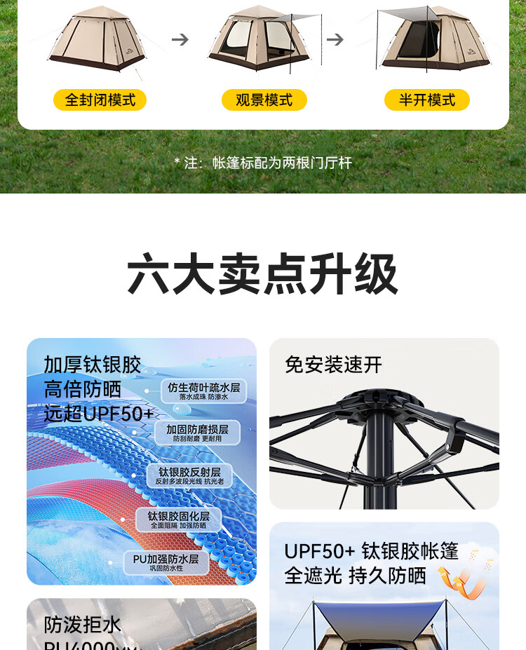 这款帐篷质量真是没话说!空间宽敞,搭建简单方便💪,材质结实耐用🏕️。特别喜欢它的透气设计,夏天夜晚露营也更舒适🛖。超级满意的一次购物体验!再也不用担心户外活动没有好装备了!