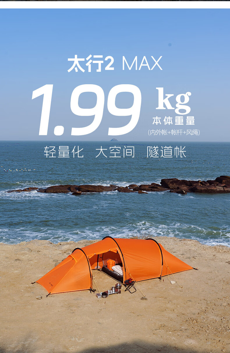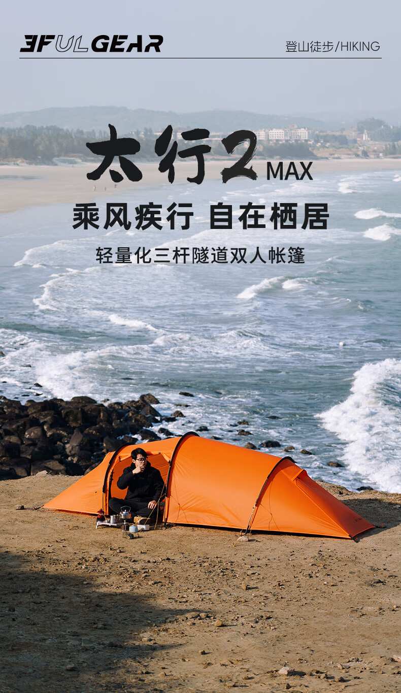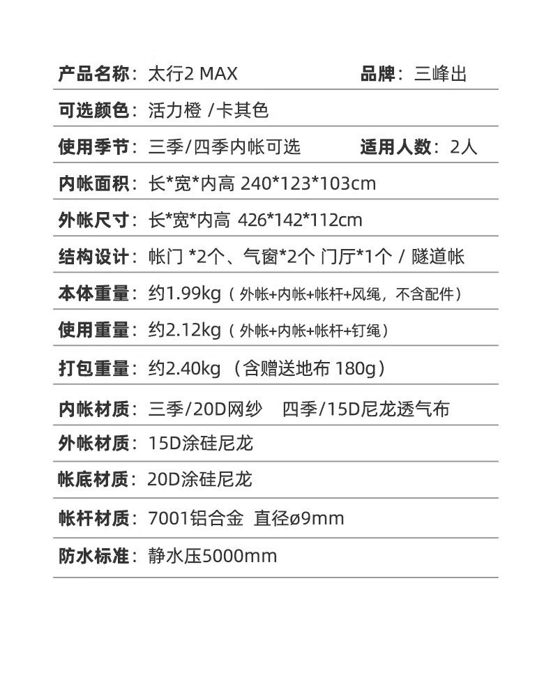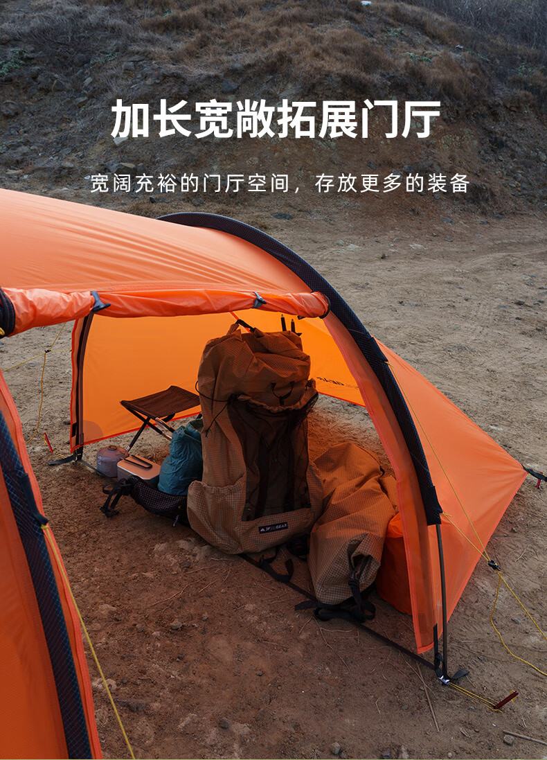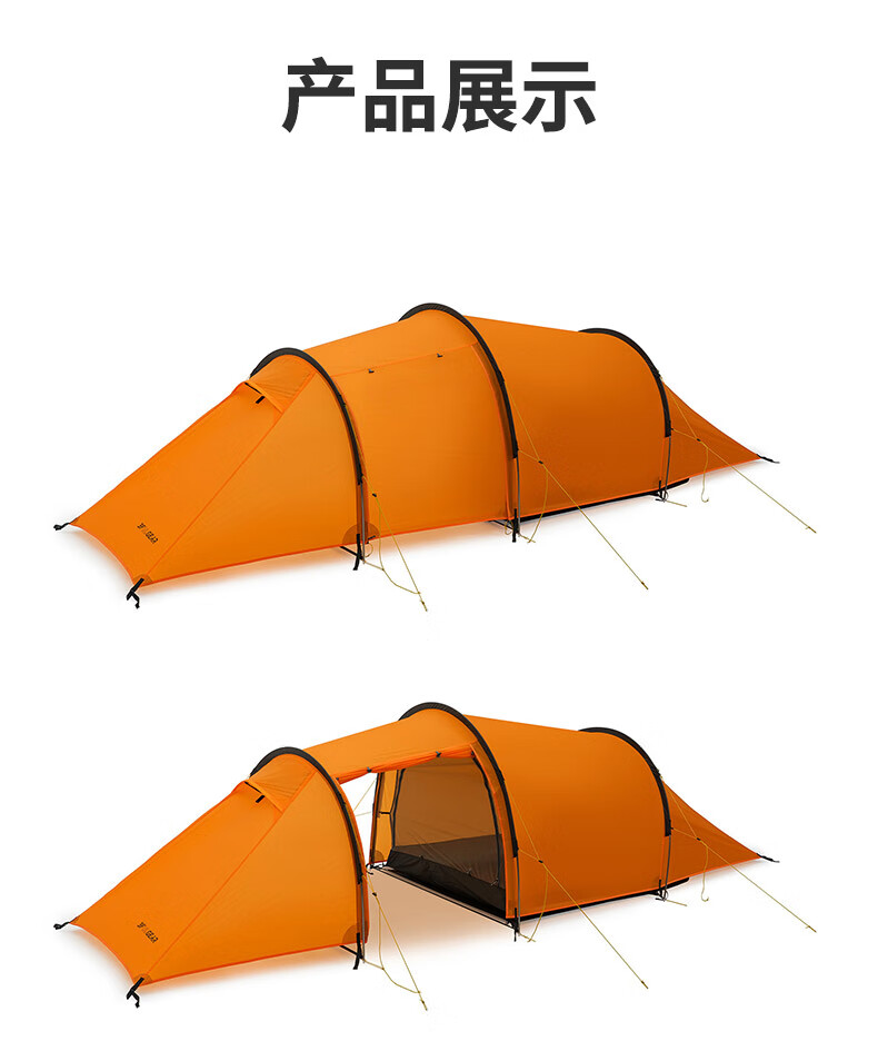 三峰出三峰出太行2MAX双人帐篷户外超轻隧道帐徒步登山骑行露营专业装备 太行2 MAX 三季活力橙