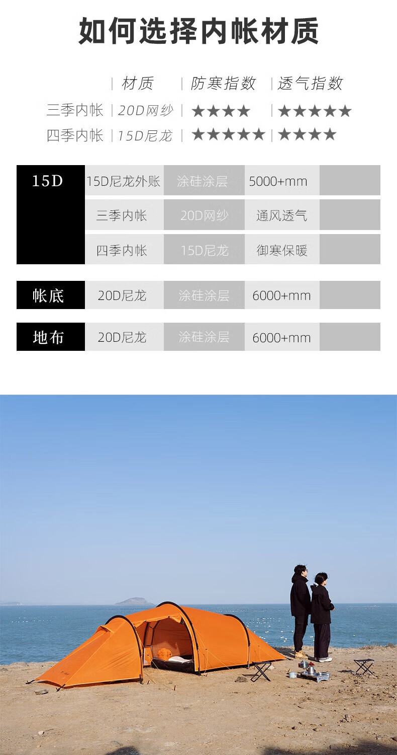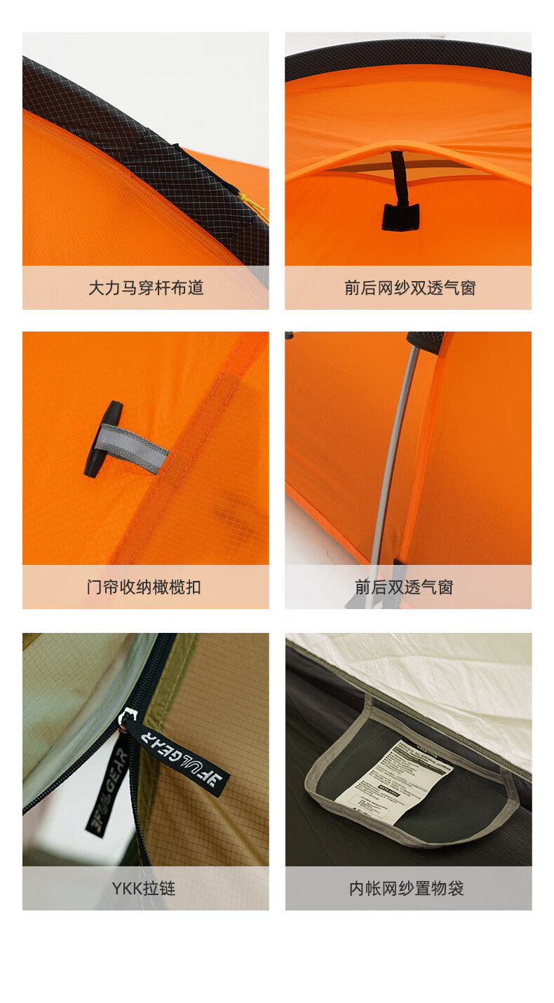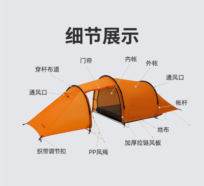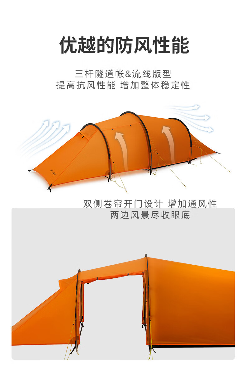 三峰出三峰出太行2MAX双人帐篷户外超轻隧道帐徒步登山骑行露营专业装备 太行2 MAX 三季活力橙