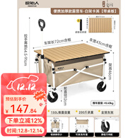 原始人(The Primitive)露营推车户外折叠推车儿童可躺野餐营地野营旅行小拖车轻便手拉车 便携款白架卡其+可折叠便携桌板