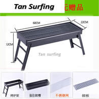 芮帕(RUIPA)烧烤架户外木炭烧烤炉子家用便携BBQ加厚烤肉箱全套工具3一6 长炉(60x22x32cm)1-8人 不锈钢网标准款