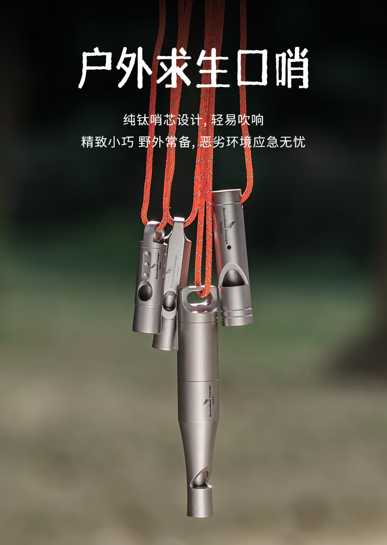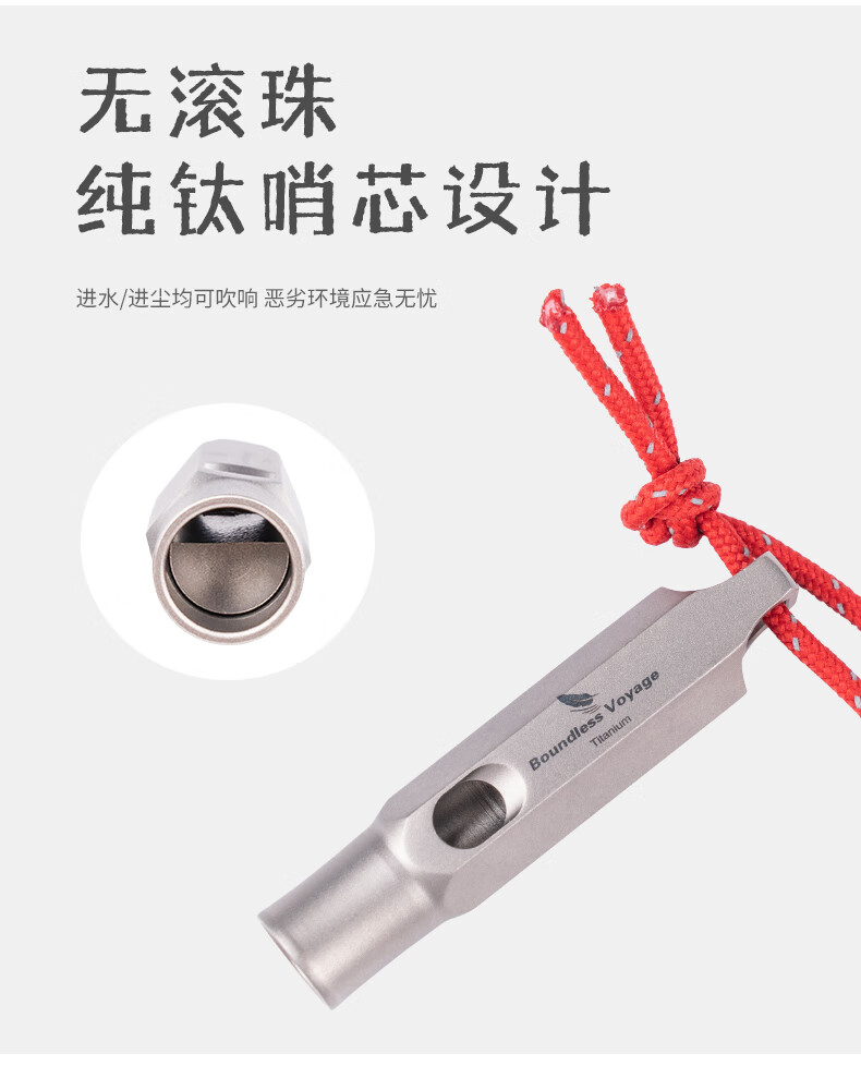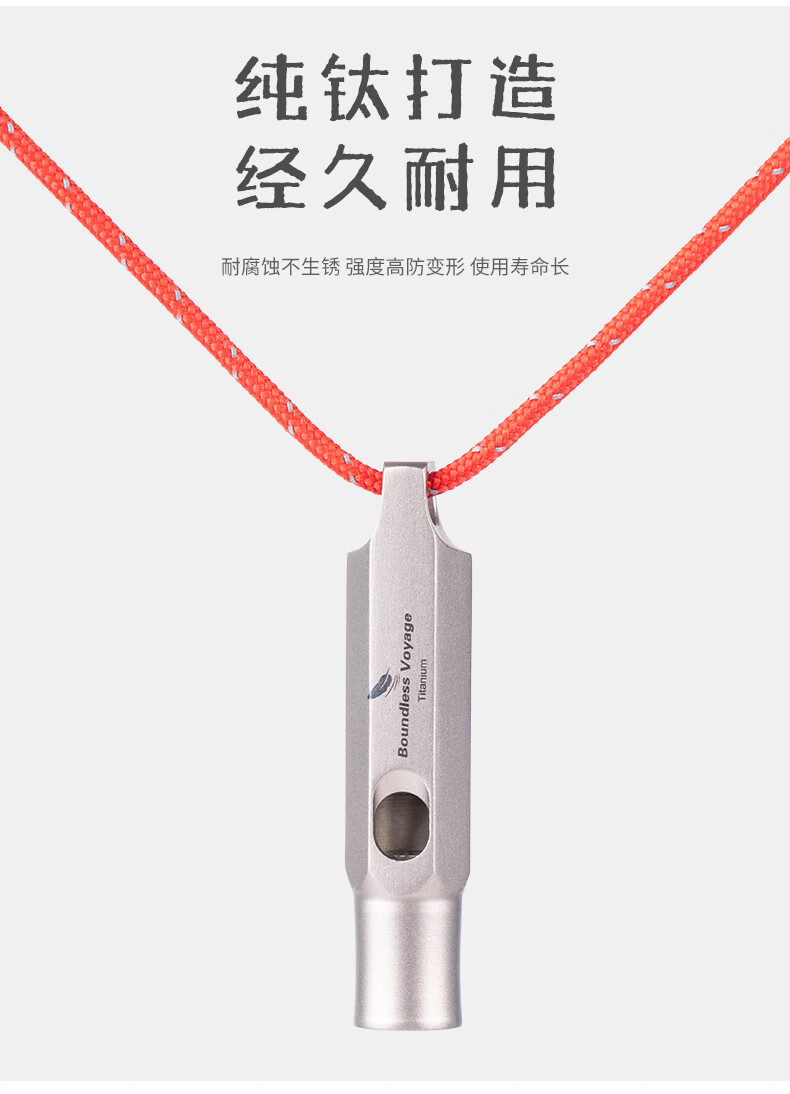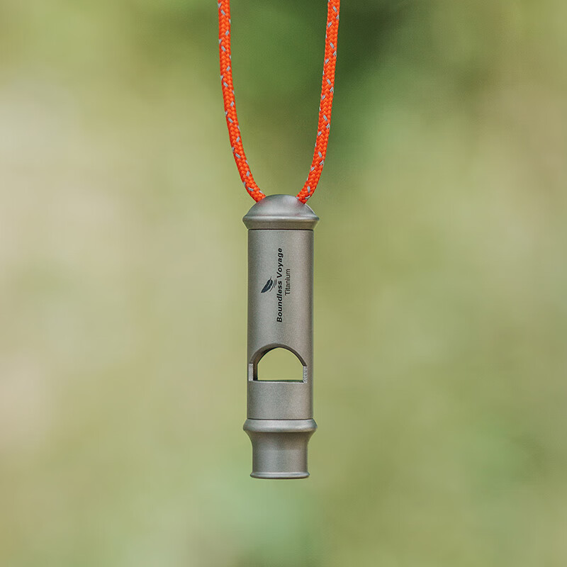 必唯(BOUNDLESS VOYAGE)纯钛户外求生口哨轻量便携野营救生哨子野营装备挂绳钛哨登山 Ti9015O 钛色120分贝