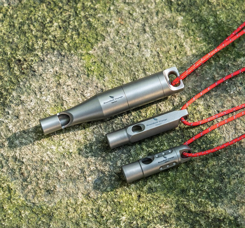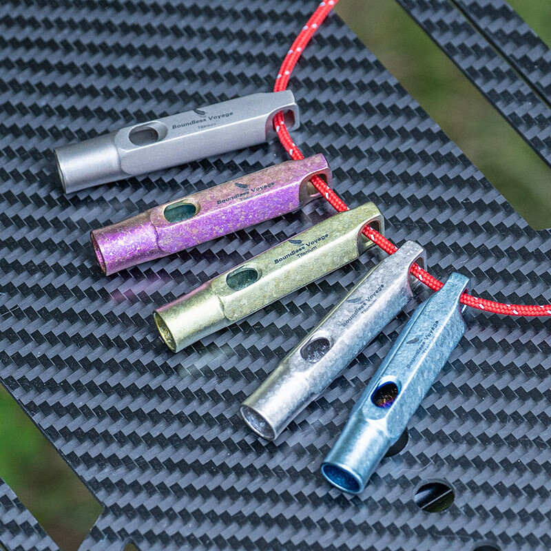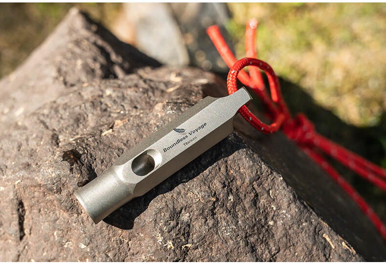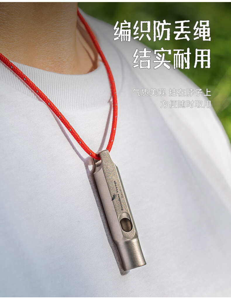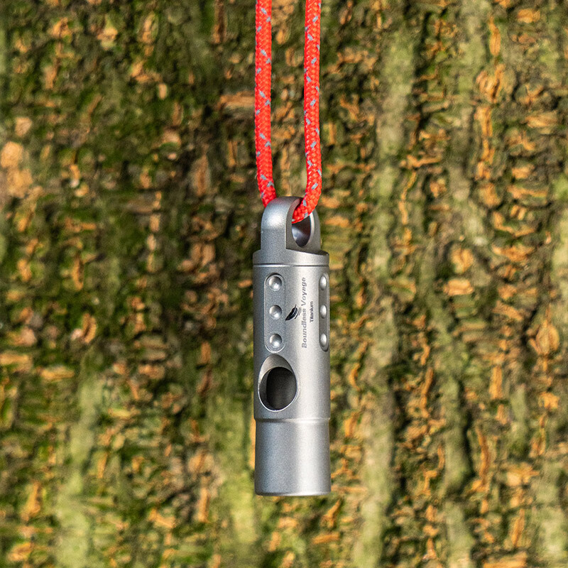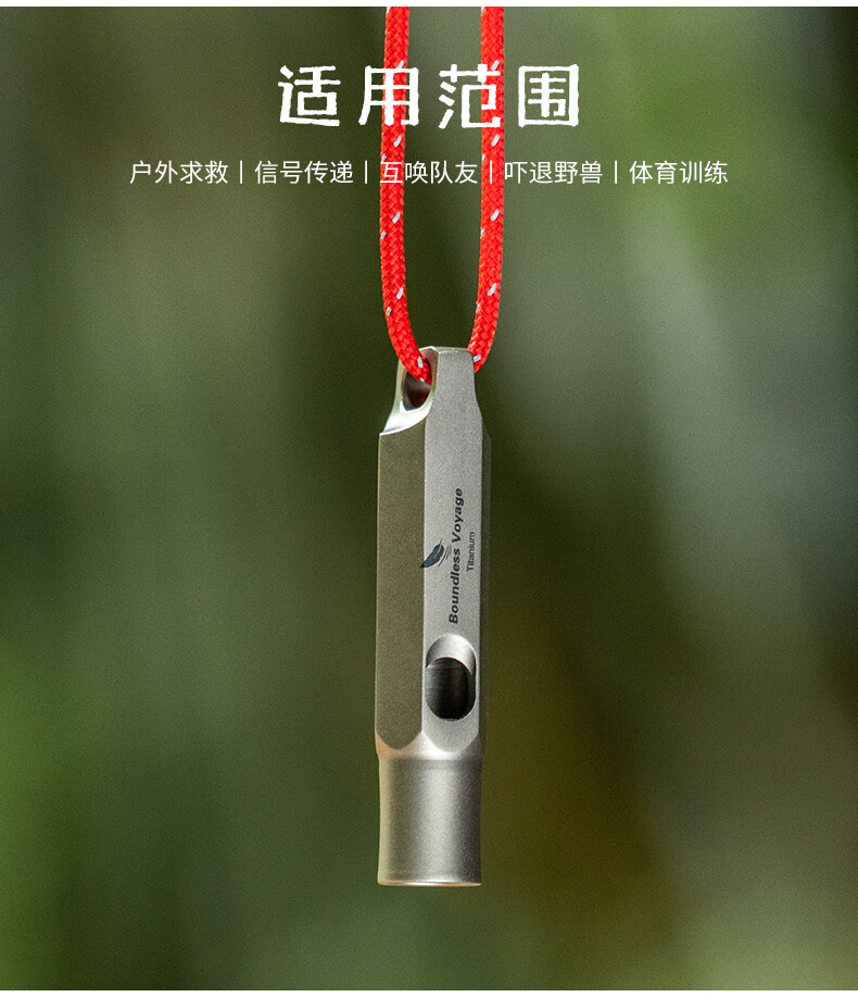 必唯(BOUNDLESS VOYAGE)纯钛户外求生口哨轻量便携野营救生哨子野营装备挂绳钛哨登山 Ti9015O 钛色120分贝